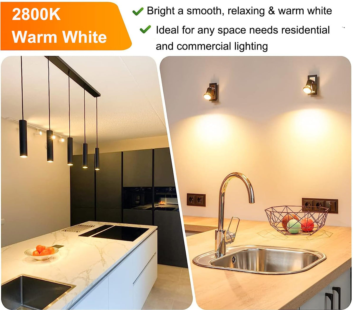 Illuminate your space with the Vinaco PAR16 Bulb, designed to provide exceptional brightness and energy efficiency. This high-output dimmable PAR16 flood light is perfect for a variety of applications, including range hoods, table lighting, and track lighting. With a 45W equivalent and a warm glow of 2800K, this bulb enhances the ambiance of any room while ensuring long-lasting performance.