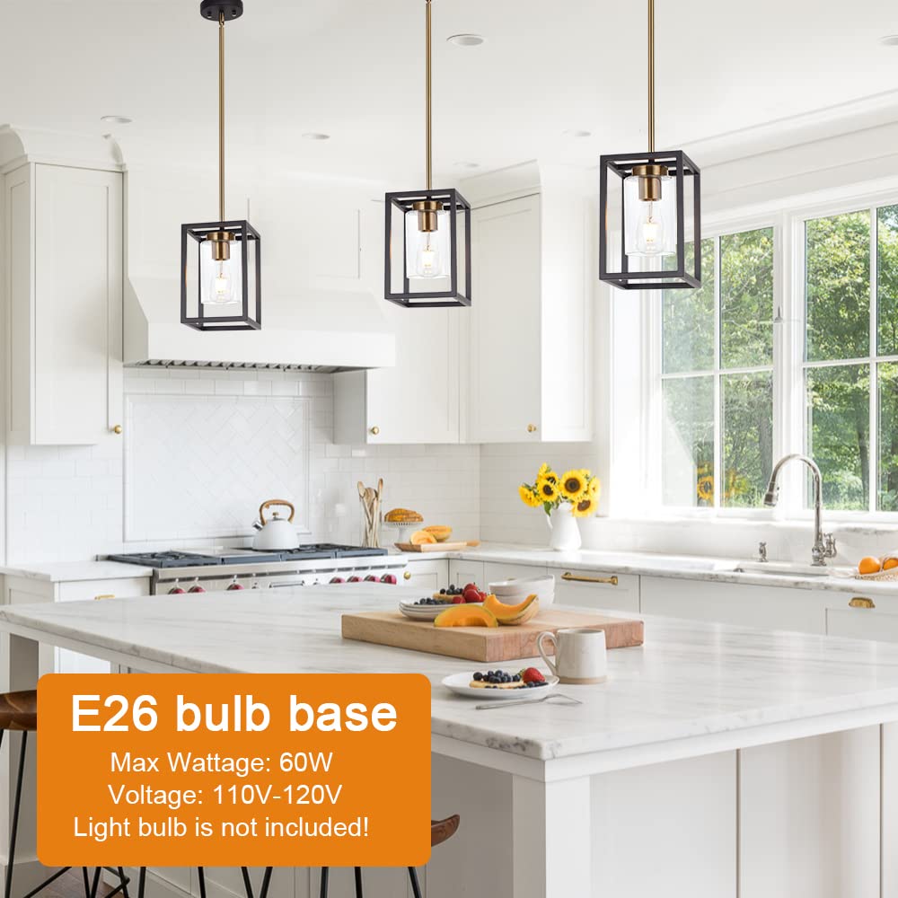 Vinluz 1-Light Mini Lantern Pendant Light,Black And Brushed Brass Finish Farmhouse Chandelier With Clear Glass Shade Foyer Cage