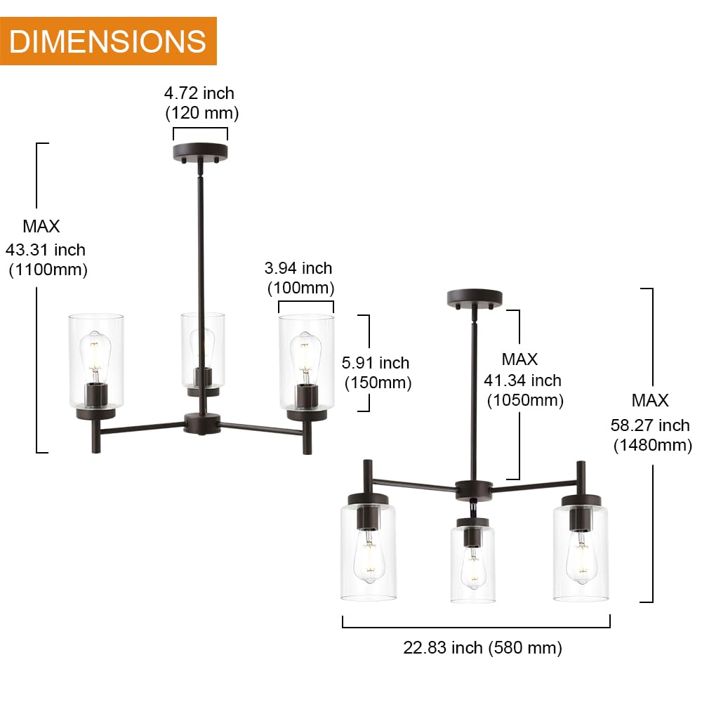 Vinluz 3-Light Chandeliers, Oil-Rubbed Bronze Pendant Lighting With Clear Glass Shades