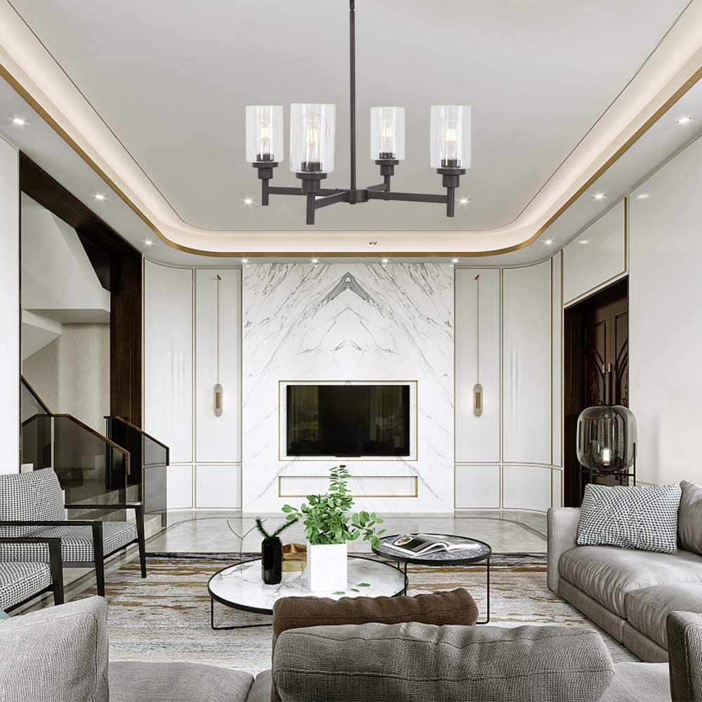VINLUZ 4 Light Pendant Chandelier Modern Metal Lighting Oil Rubbed Bronze Industrial Ceiling Lighting Fixture for Dining Room Ki