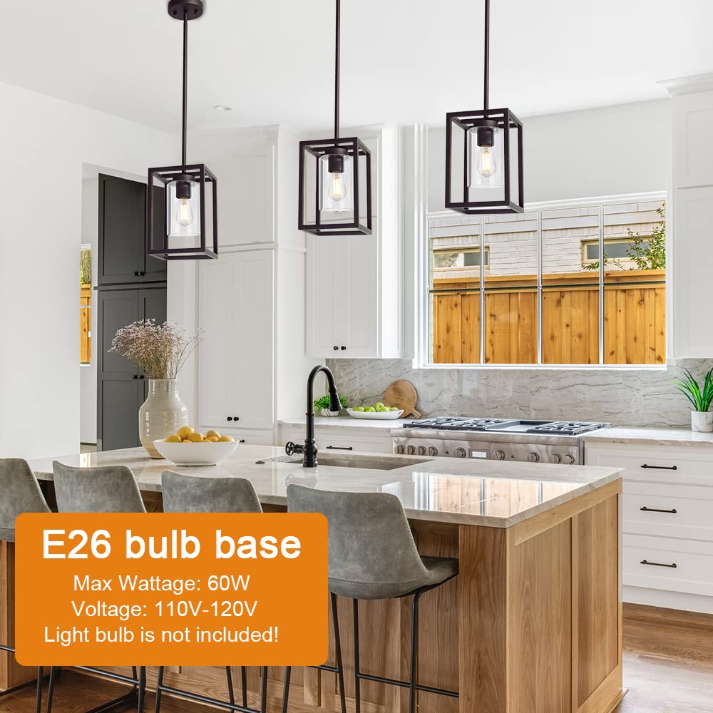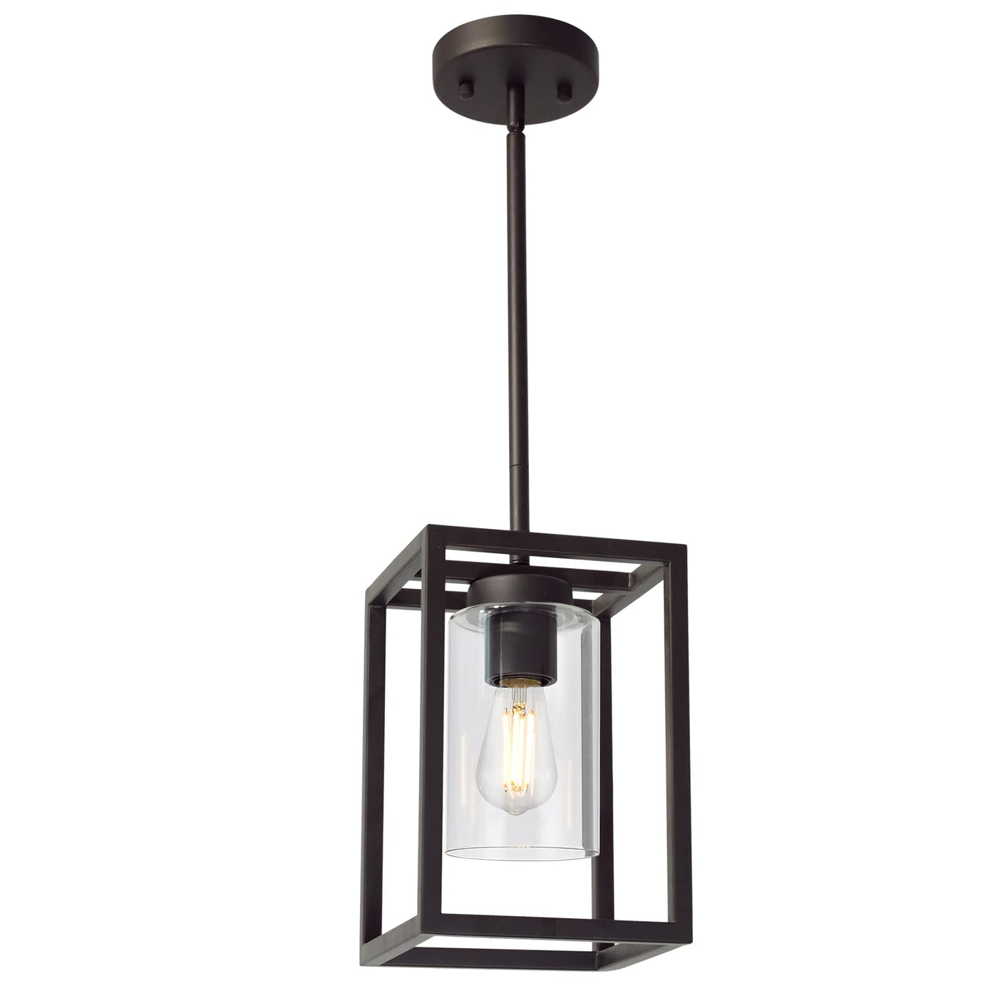 Vinluz Modern 1-Light Cage Kitchen Island Pendant Lighting With Glass Shade Oil Rubbed Bronze Chandeliers Dining Room Lighting F