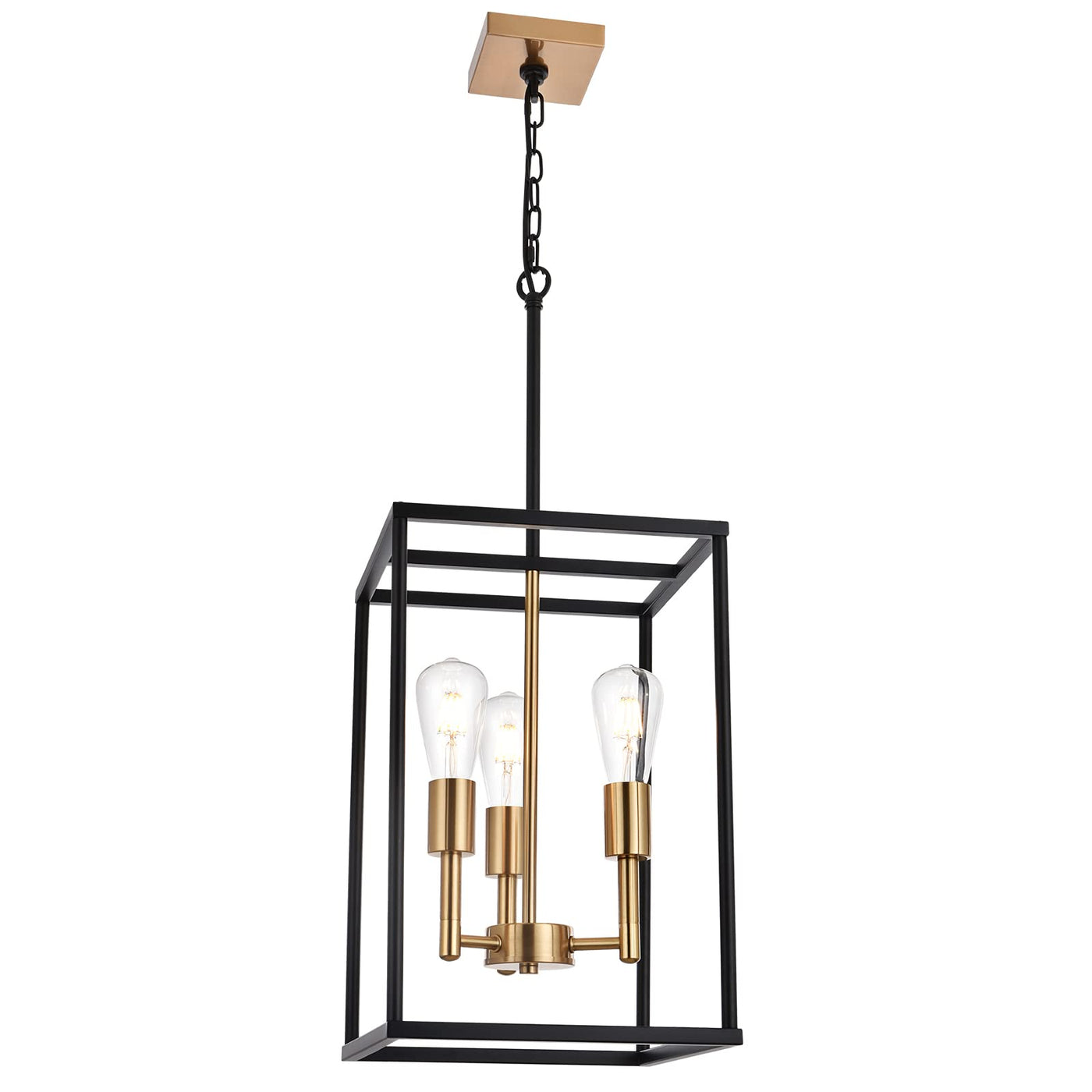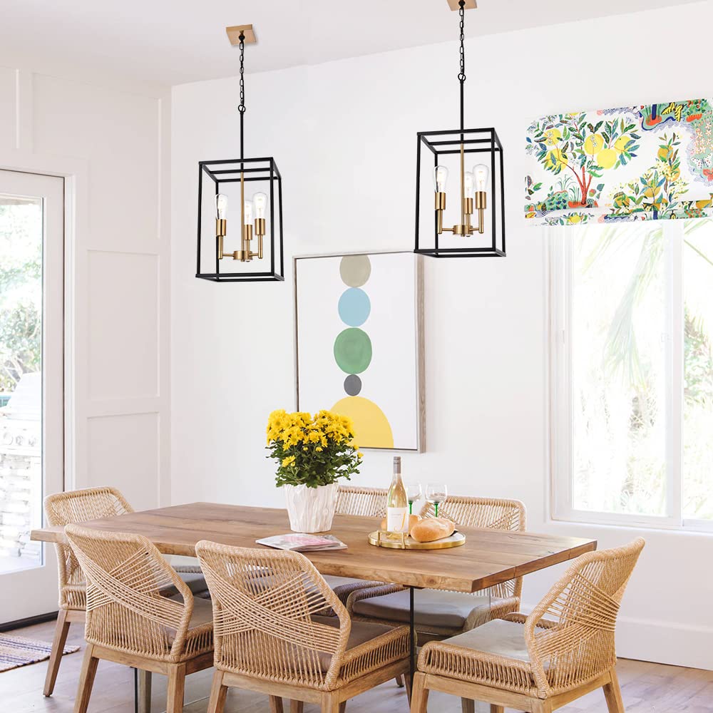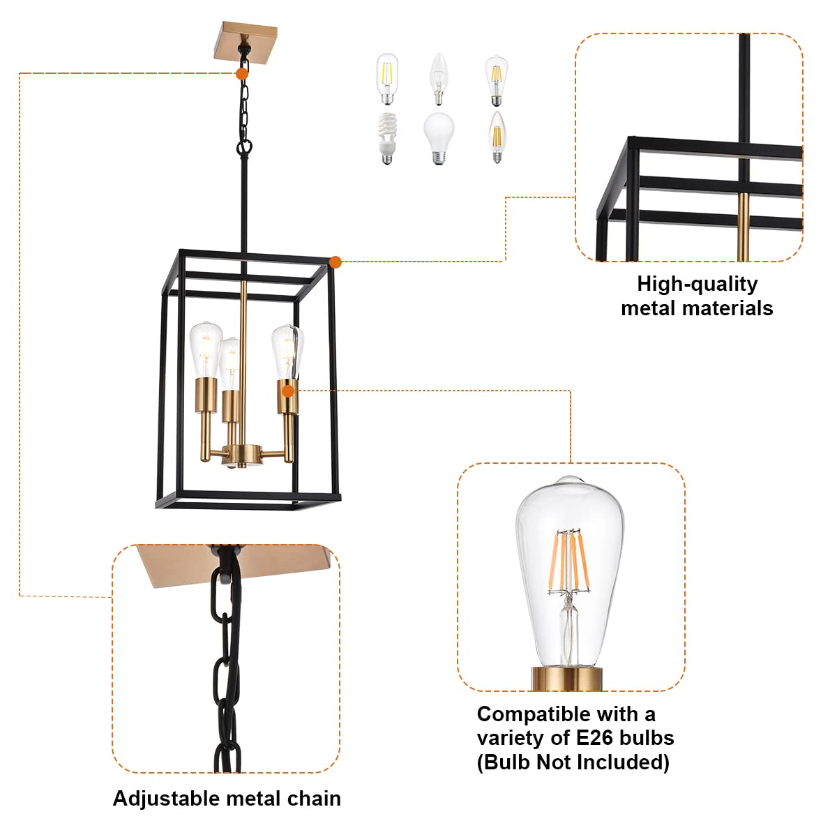 Vinluz Vintage Industrial Pendant Light, Black & Brass Lantern Chandelier For Kitchen & Dining Room