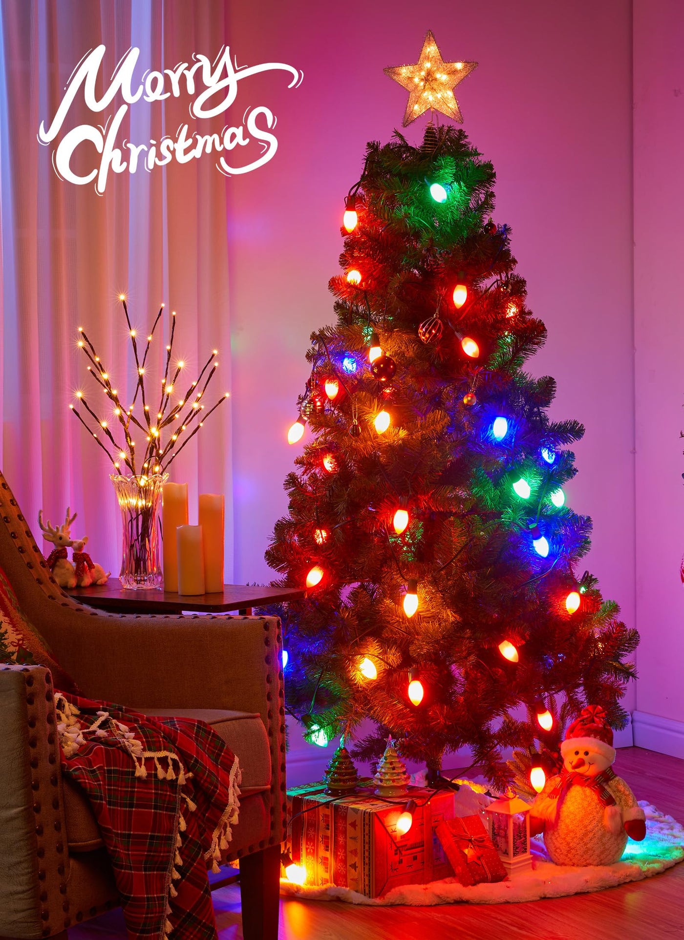 Classic C9 String Light Set With 100 Feet Green Wire String And 100 Pack C9 Led Multicolored Light Bulbs. These C9 Multicolor Christmas Lights Have A Classic Appearance. They Are Versatile Enough To Be Useful In A Variety Of Ways. Not Only Are They Perfect For Outdoor Decoration For Arbors, Patios, And Other Highlighted Holiday Areas, They Can Be Used Indoors With Christmas Trees. When The Season Shifts, As All-Year Accent Lighting In Other Areas Of Your Home Such As Dressing Room Settings For Makeup Application. Green Wiring Helps Blend Each Strand Into The Background And Allow The Lights To Really Shine. Brighten Up Your Home And Yard With These Cozy, Cheerful Christmas Lights! Specifications: Green Wire Bulbs Count: 104 Bulbs(4 Sapre Bulbs) E12 Base Sockets Wattage: Each C9 Led Bulb Is 1 Watts Long Lifespan 25000 Hour C9 Bulbs Connectable: Can Connect Up To 7 Strings(Include 1St Set)