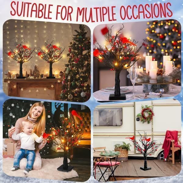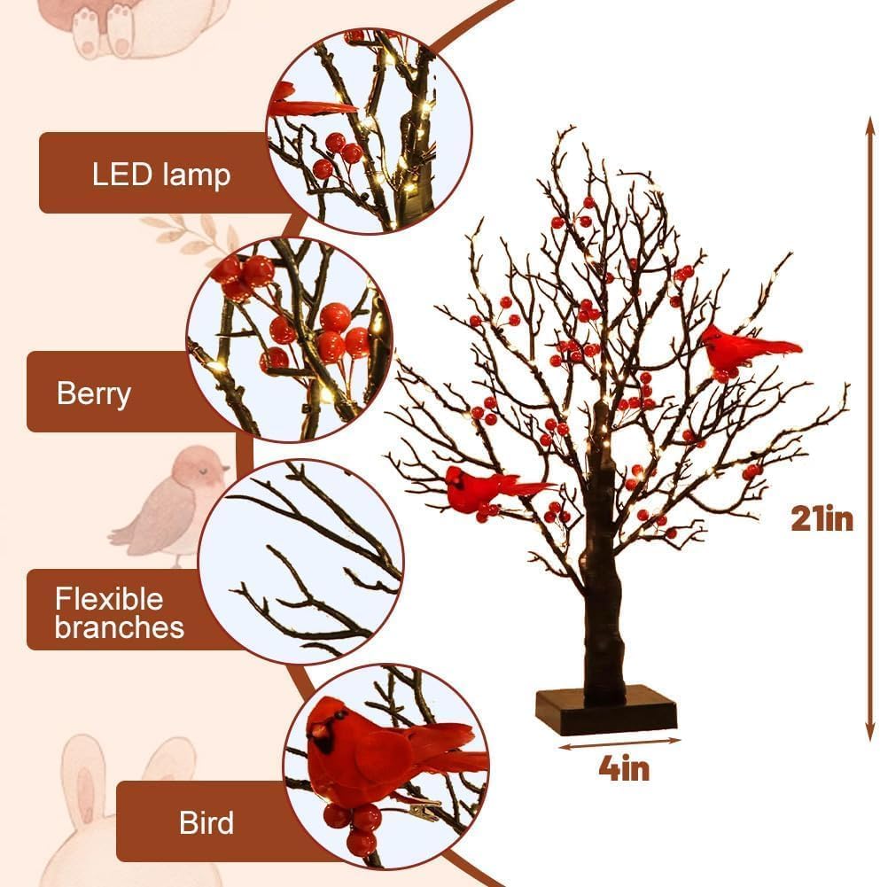Vintage Glowing Tree With Cardinals Vintage Glowing Tree Operated By Battery Twinkle Trees Lamp With Lighted Branches For Halloween Christmas-No Batteries