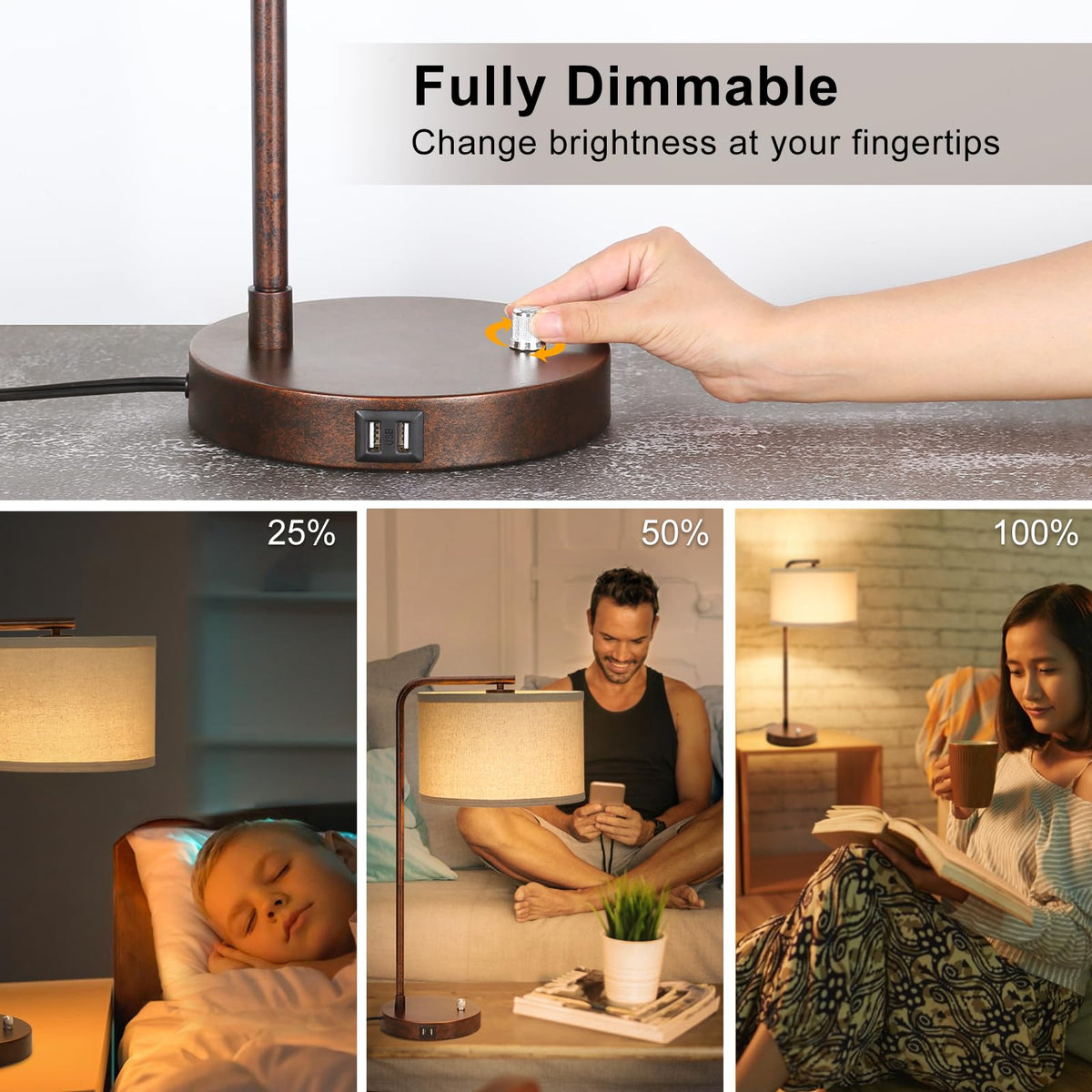 With A Dimming Switch Located At The Bottom Of This Table Reading Lamp, Its Brightess Can Be Set From 0 To 100% For Different Occassions. Built-In Dual Usb Ports Save You From The Trouble Of Fumbling With Chargers To Juice Up Your Phone, Greatly Facilitate Your Life As A Bedside Lamp.