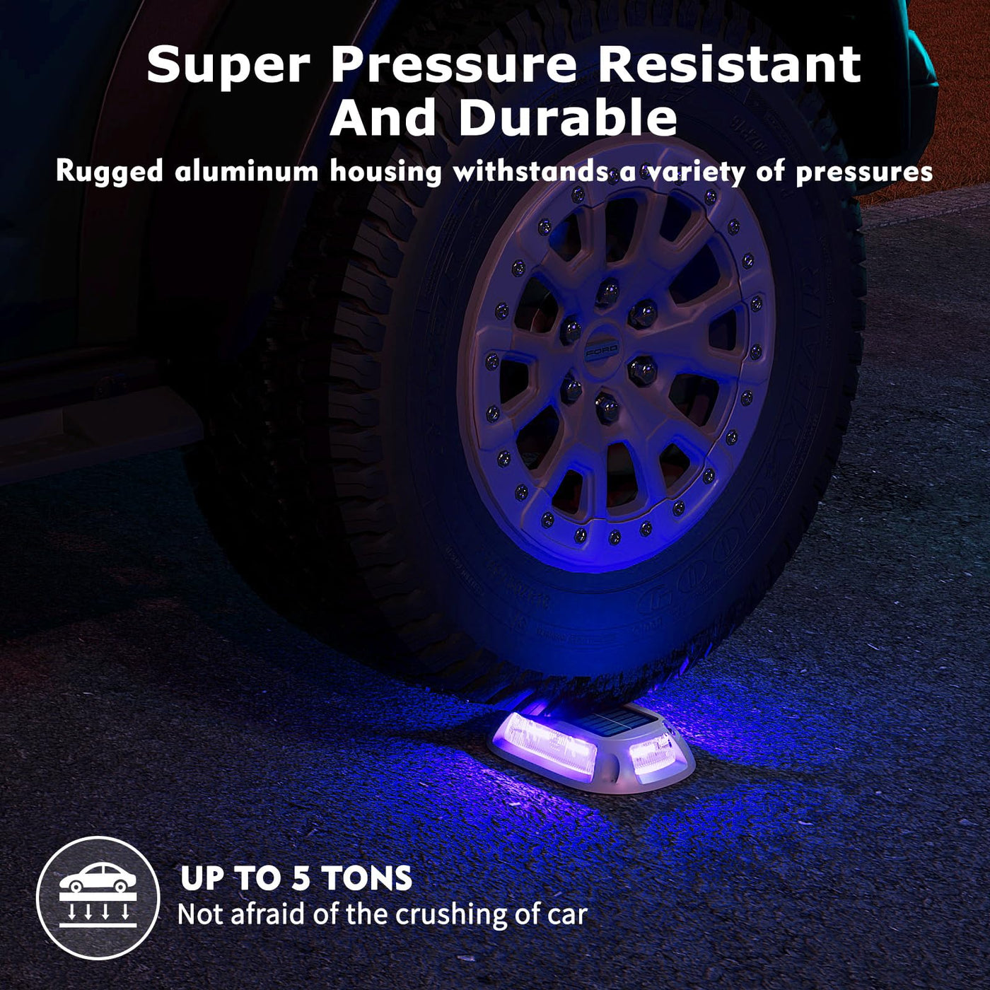 Q: What are the main features of the VIODAIM 12Modes Multicolor Solar Driveway Lights?A: The VIODAIM solar driveway lights feature 12 lighting modes, including 9 fixed colors and 3 dynamic effects. They are made from sturdy aluminum alloy, are IP68 waterproof, and can withstand heavy loads, making them suitable for various outdoor conditions.