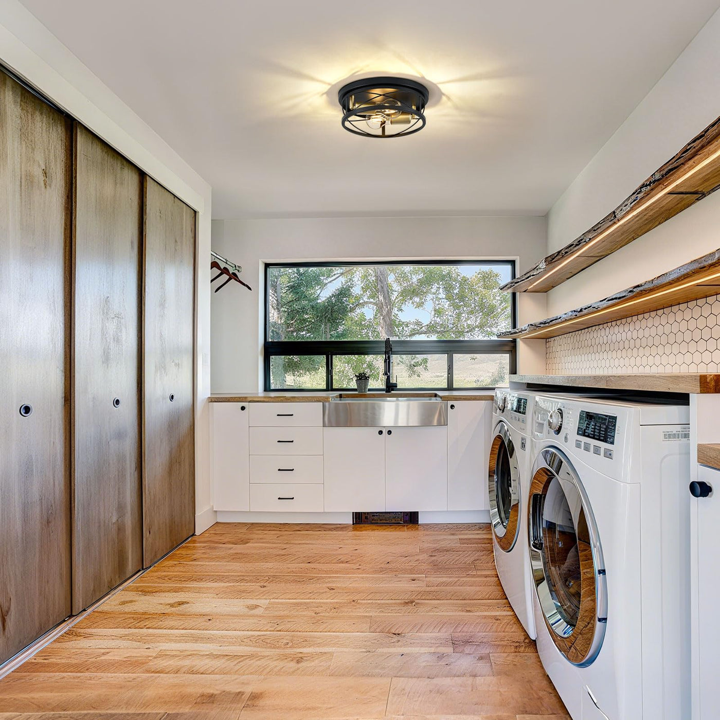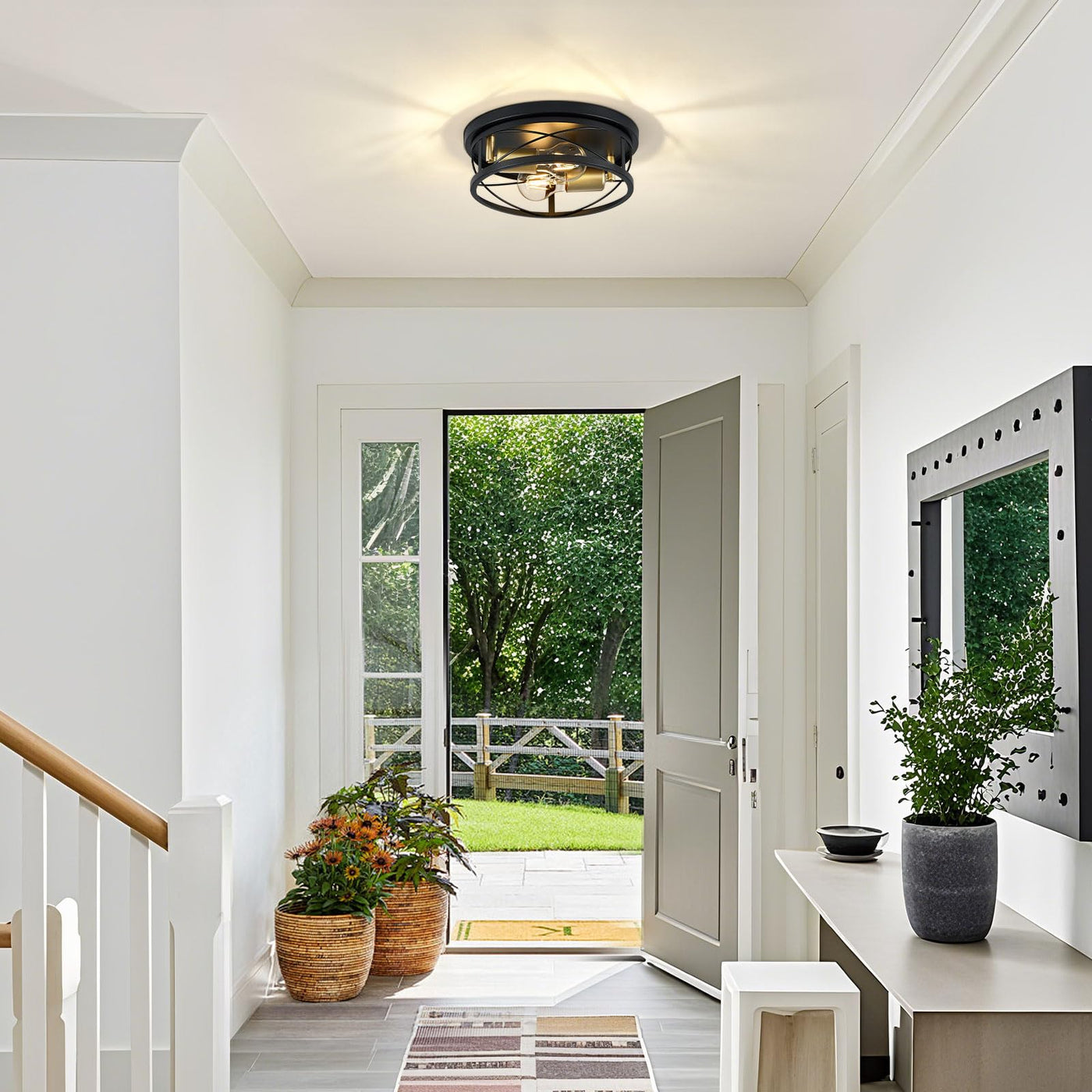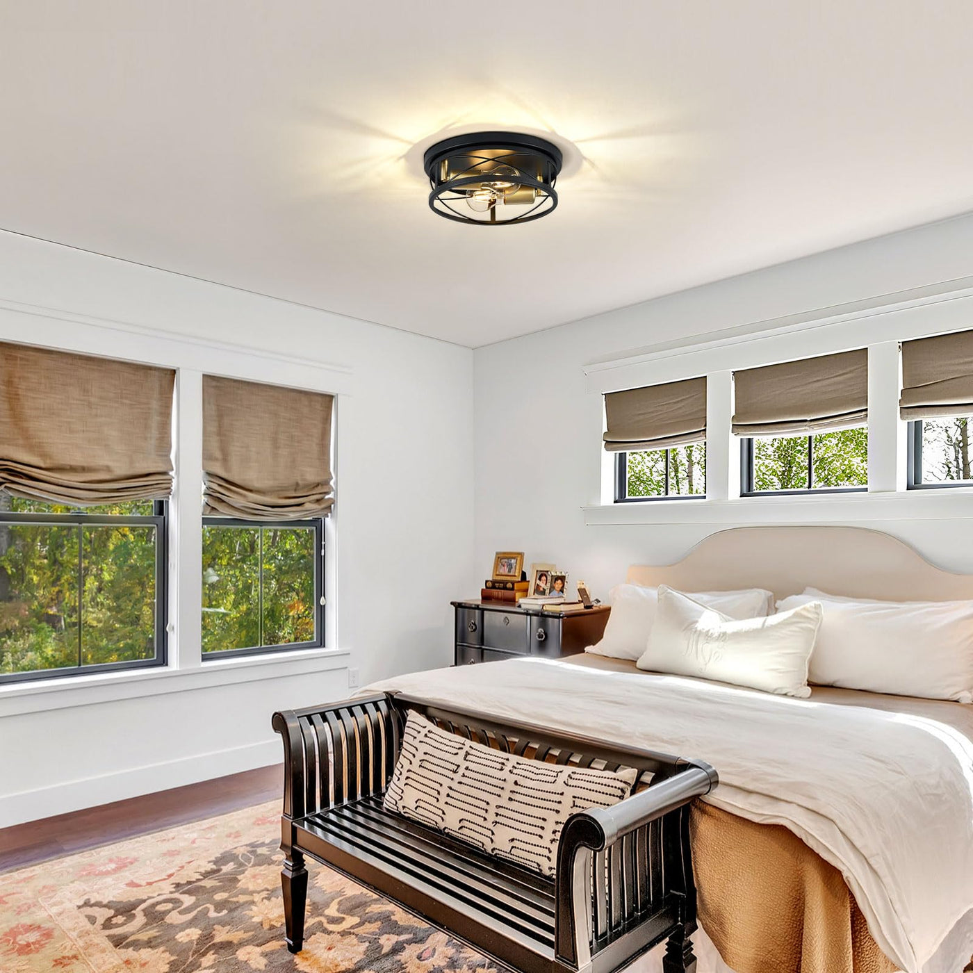 Violoemi Farmhouse Lights Black And Gold Industrial Flush Mount Ceiling Light Ceiling Lamp Farmhouse Lighting Fixture For Hallway Bedroom Kitchen Entrance 2-Light
