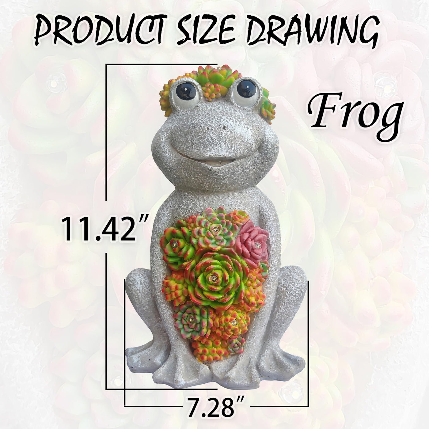 Vioyouns Large Frog Solar Garden Outdoor Statues With Succulent And 8 Led Lights,Outside Solar Frog Art Decor For Lawn,Yard, Bal