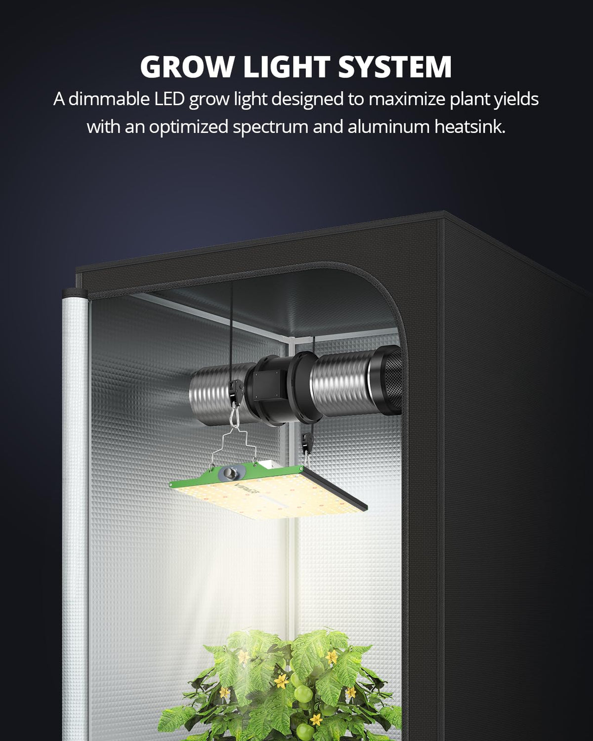 NOISE FREE-FANLESS design will make your growing life easy and quiet, quickly heat dispersing material aluminum reducing light lost to aisles and walls, increase the light intensity up to 20%, allowing your plants receive more energy.