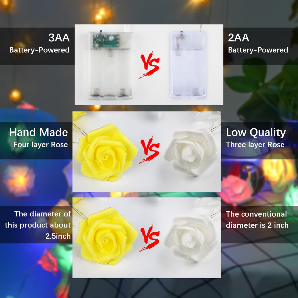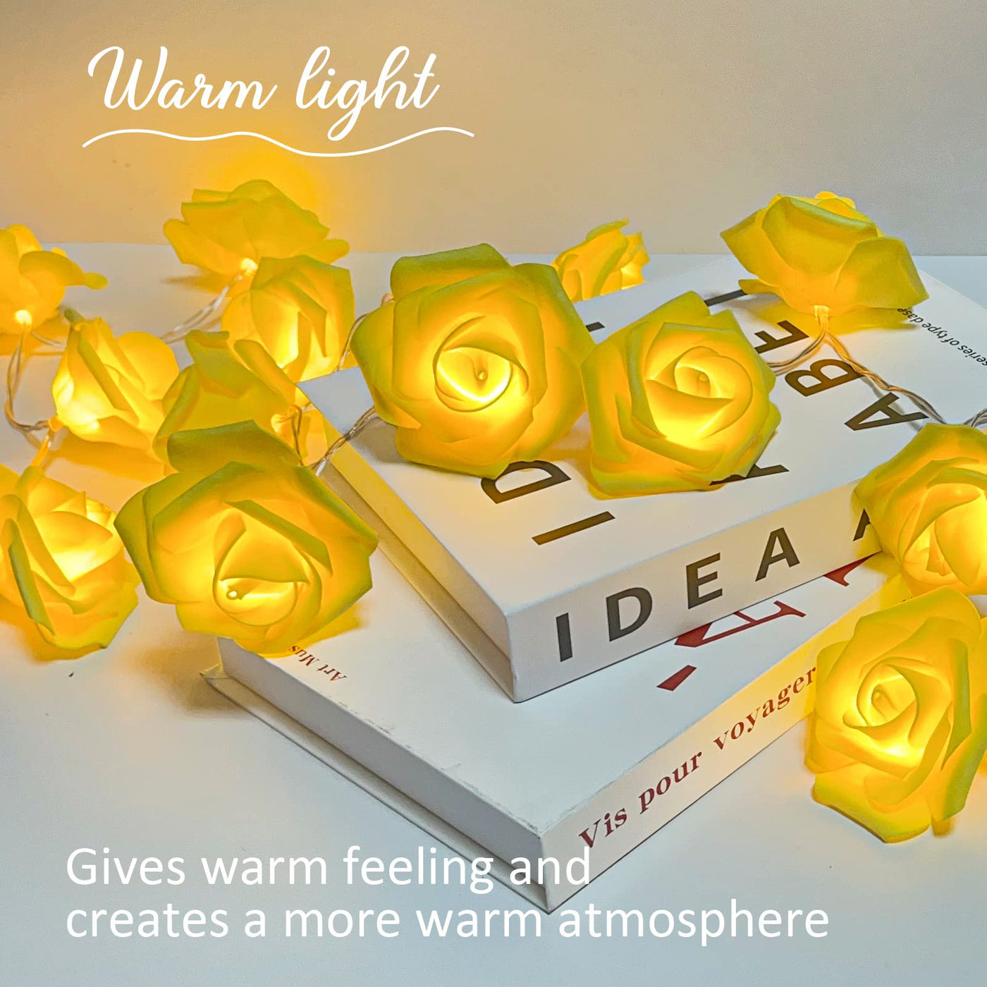 Vipmoon Rose Flower String Lights,2M 20Led Battery Operated Romantic String Lights Warm Flower Rose Lamp Fairy Light For Valentine'S Day Wedding Gardens Party Christmas Decoration Yellow