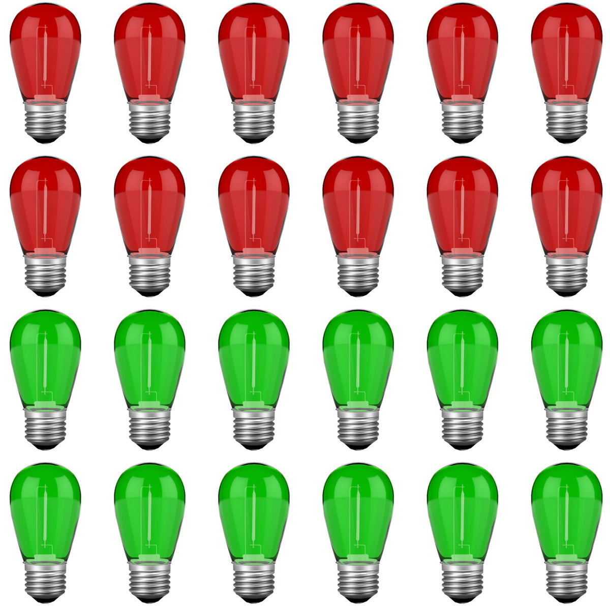 Visterlite 24 Pack Red Green S14 Christmas Light Bulbs, 1 Watt Plastic Shatterproof Led Replacement Bulbs For Indoor Outdoor Pat