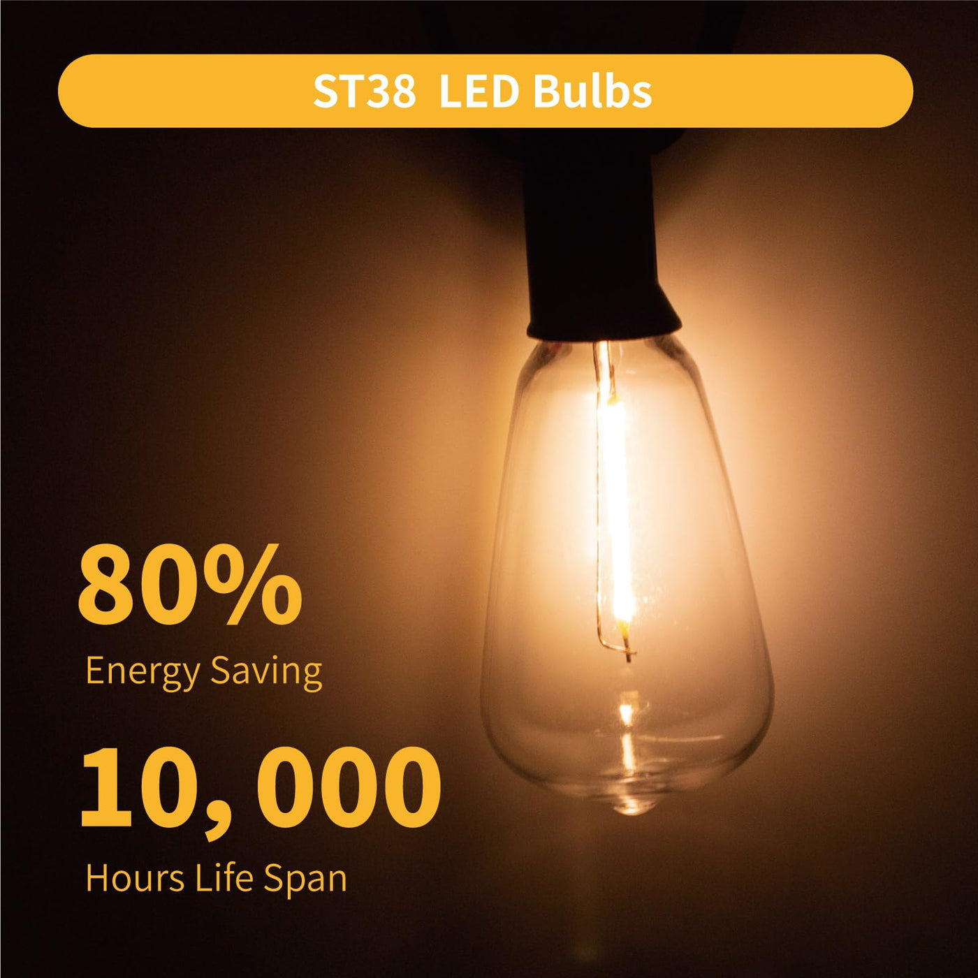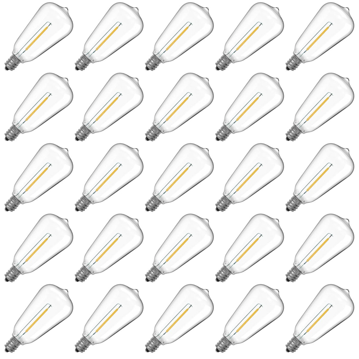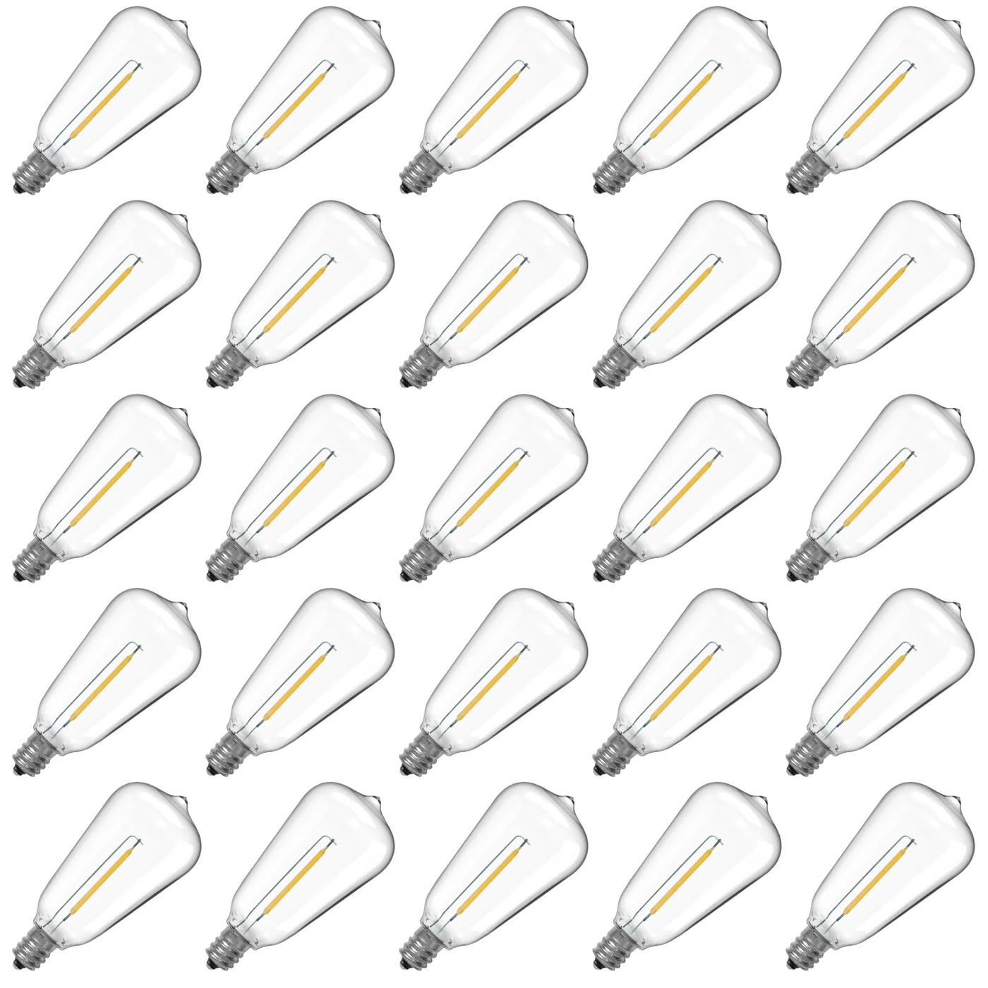 ST38 LED String Light Bulbs, 1.5 Inches Shatterproof Plastic LED Replacement Bulbs for Outdoor String Lights, 1 Watt Equvanlent to 7 Watt Incandescant Bulbs, E12 Candelabra Screw Base, Warm White, 25Pack