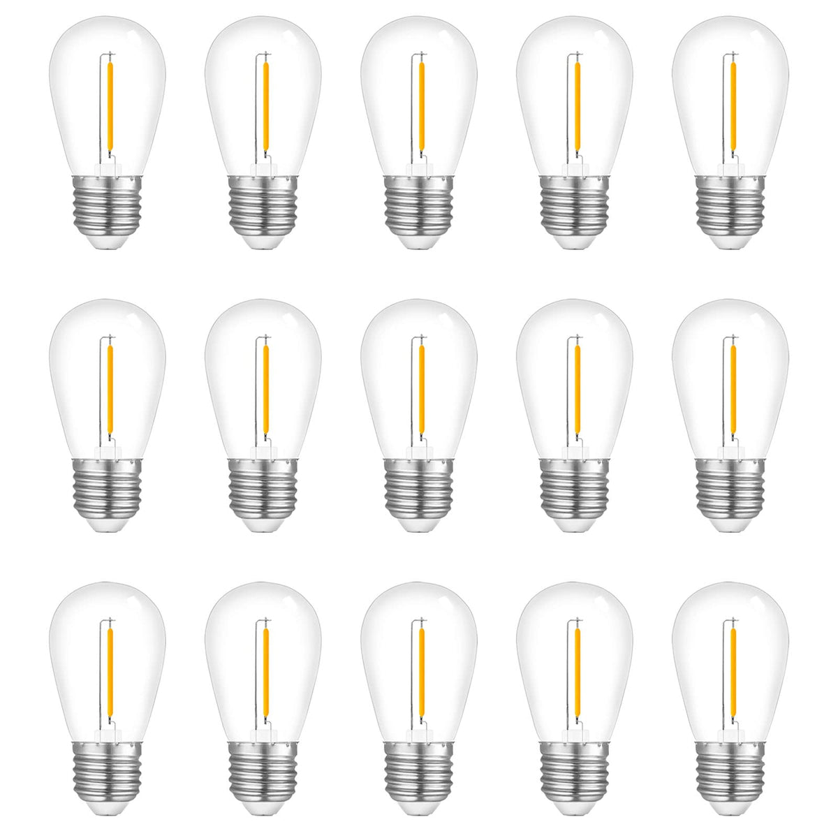 Visther 15-Pack String Light Bulbs, S14 Led Outdoor Waterproof Replacement Bulb, E26 Base Bulbs, 1W 120V, 2700K Warm White