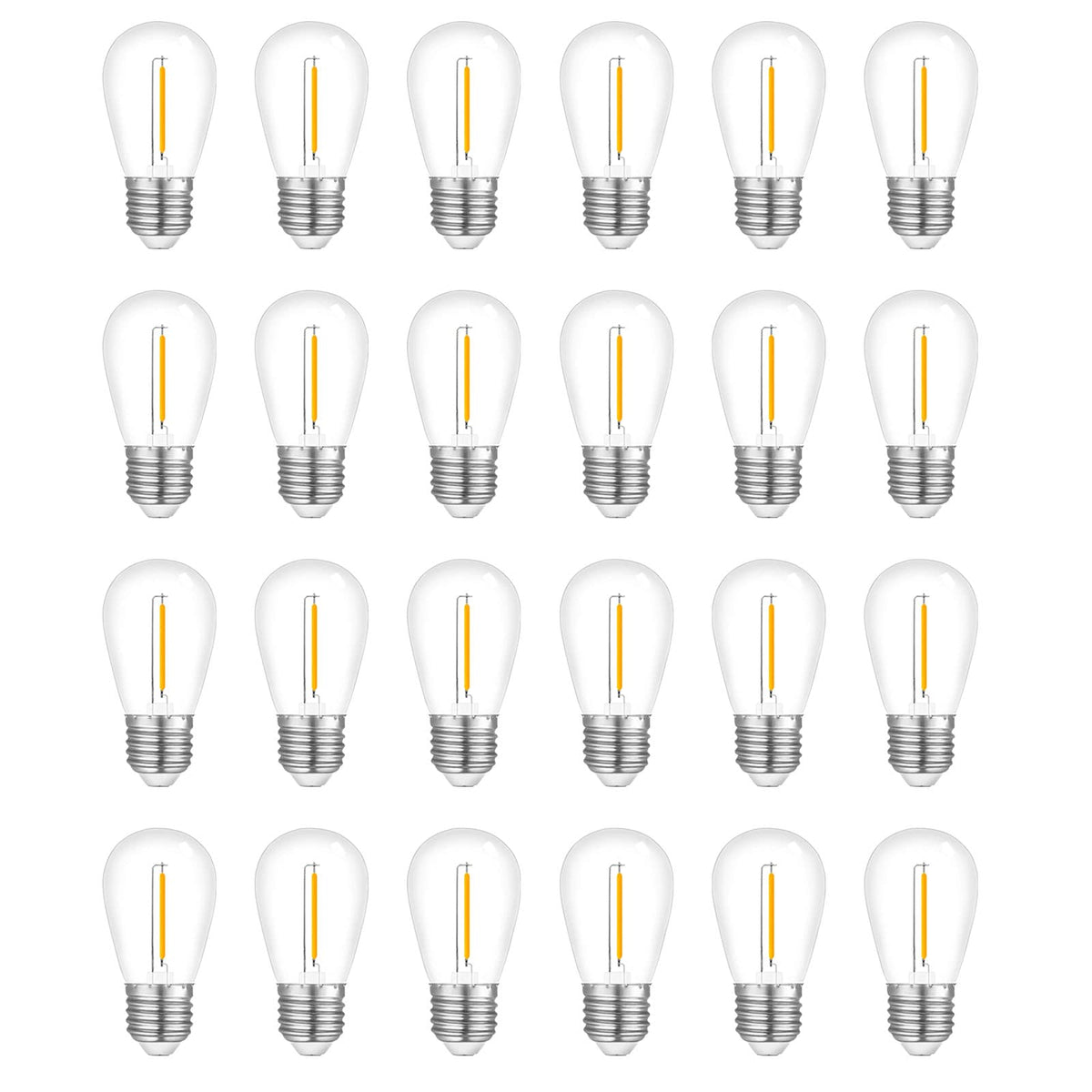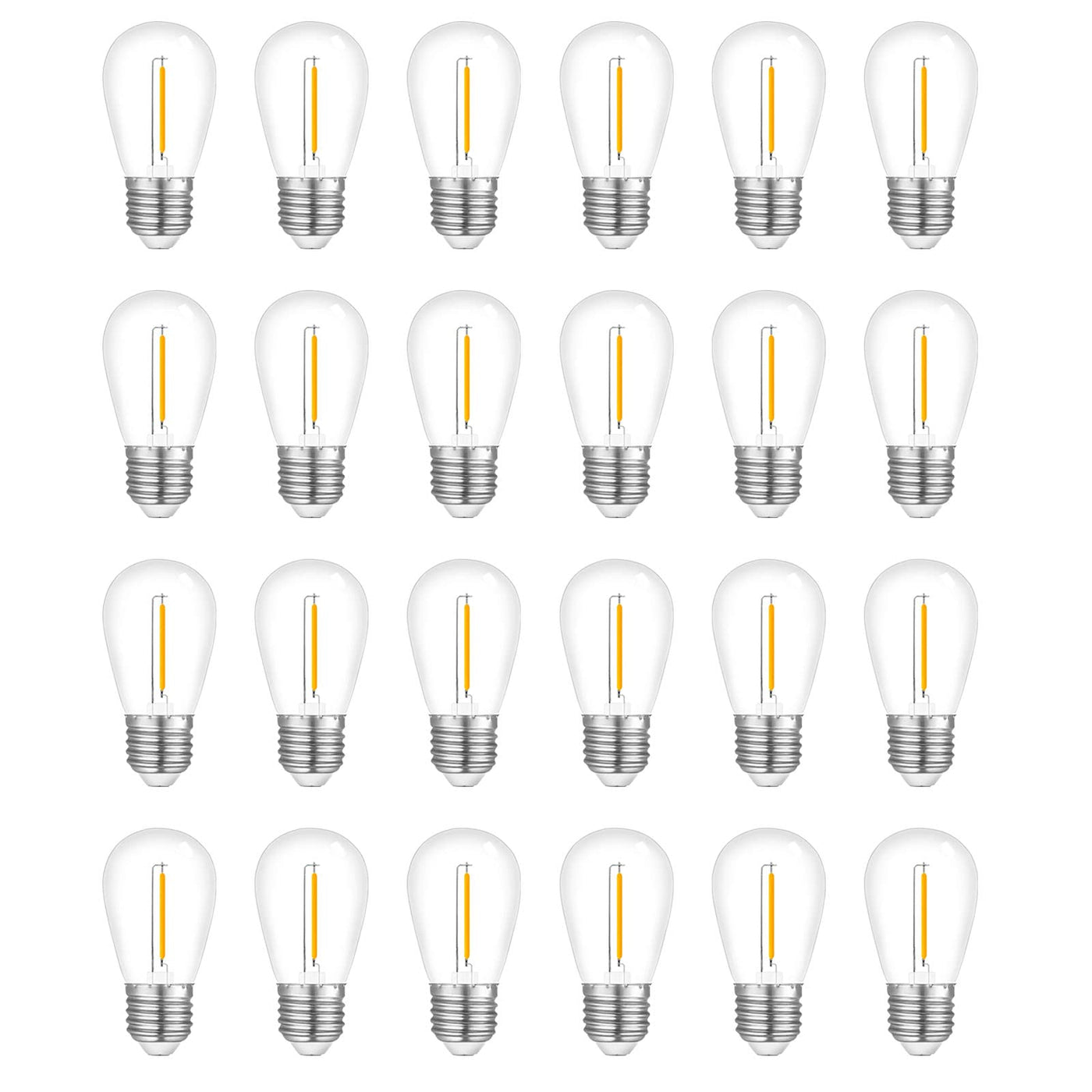 Visther 24-Pack String Light Bulbs, S14 Outdoor Waterproof Replacement Bulb, E26 Base Bulbs, 1W 120V, 2700K Warm White