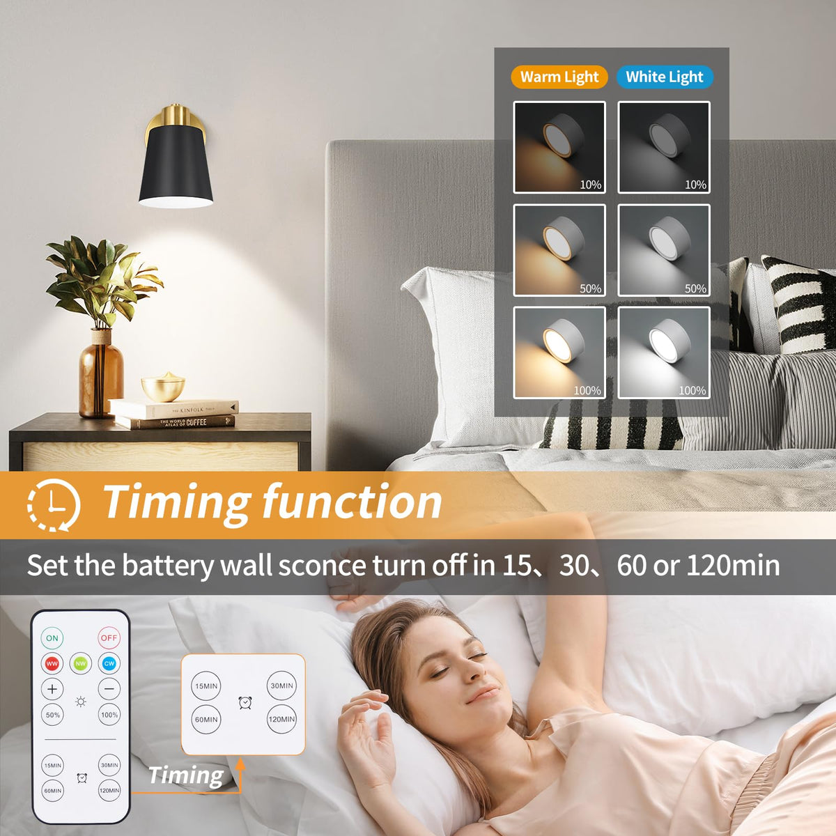 Vitnucrol 2 Pack Gold Magnetic Wireless Battery Operated Wall Sconces The brightness of the battery-powered light source will be darker than the wiring, otherwise the power consumption will be fast. Package including: Wall Lamp X2 Magnetic Light Blub X2 Remote X2 Instruction X1