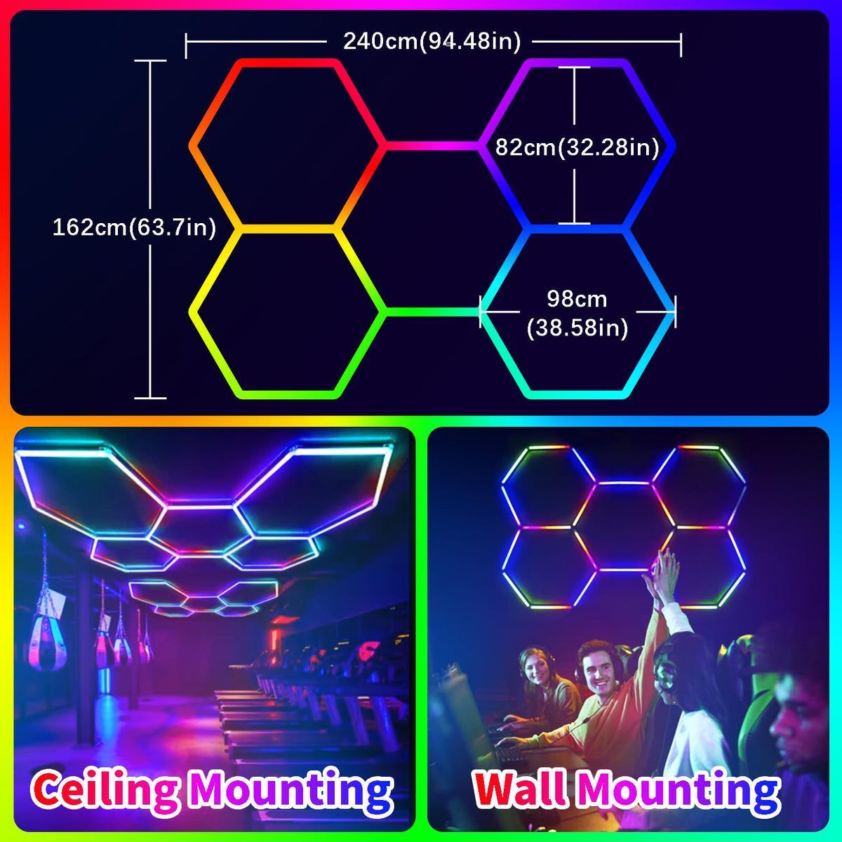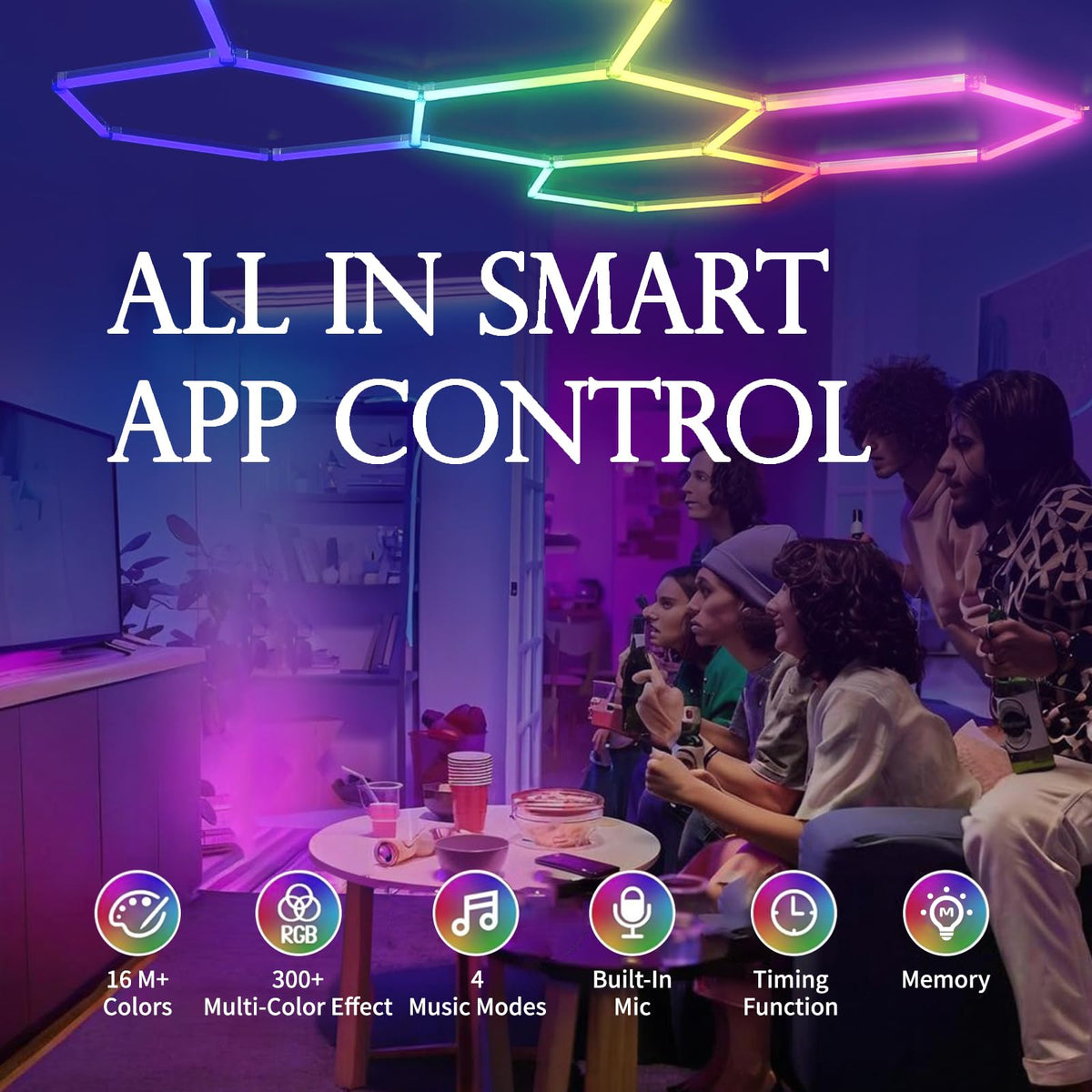 Transform your space into a dynamic, mood-enhancing environment with our customizable RGB Hexagon LED Lights. Whether youre setting up a gaming room, hosting a party, or creating a cozy bedroom retreat, these modular lights adapt to your needs. With over 16 million colors and multiple lighting modes, including music sync and scene selection, you can personalize your ambiance effortlessly. Control the lights via a user-friendly app or remote, and enjoy features like adjustable brightness, speed, Lighting memory function and even a timer function. Easy to install these ambient lighting are perfect for various settings-from home studios to cafes. Elevate your decor and immerse yourself in a lighting experience that responds to your lifestyle.