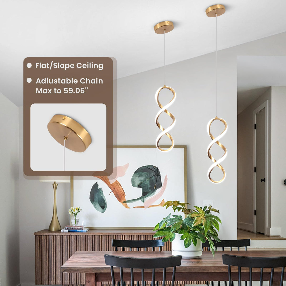 Q: Can this pendant light be installed on sloped ceilings?A: Yes, the Vloitgol Gold Led Pendant Light is designed to be compatible with both flat and sloped ceilings, allowing for versatile installation options in various settings such as kitchens, dining rooms, or bedrooms.