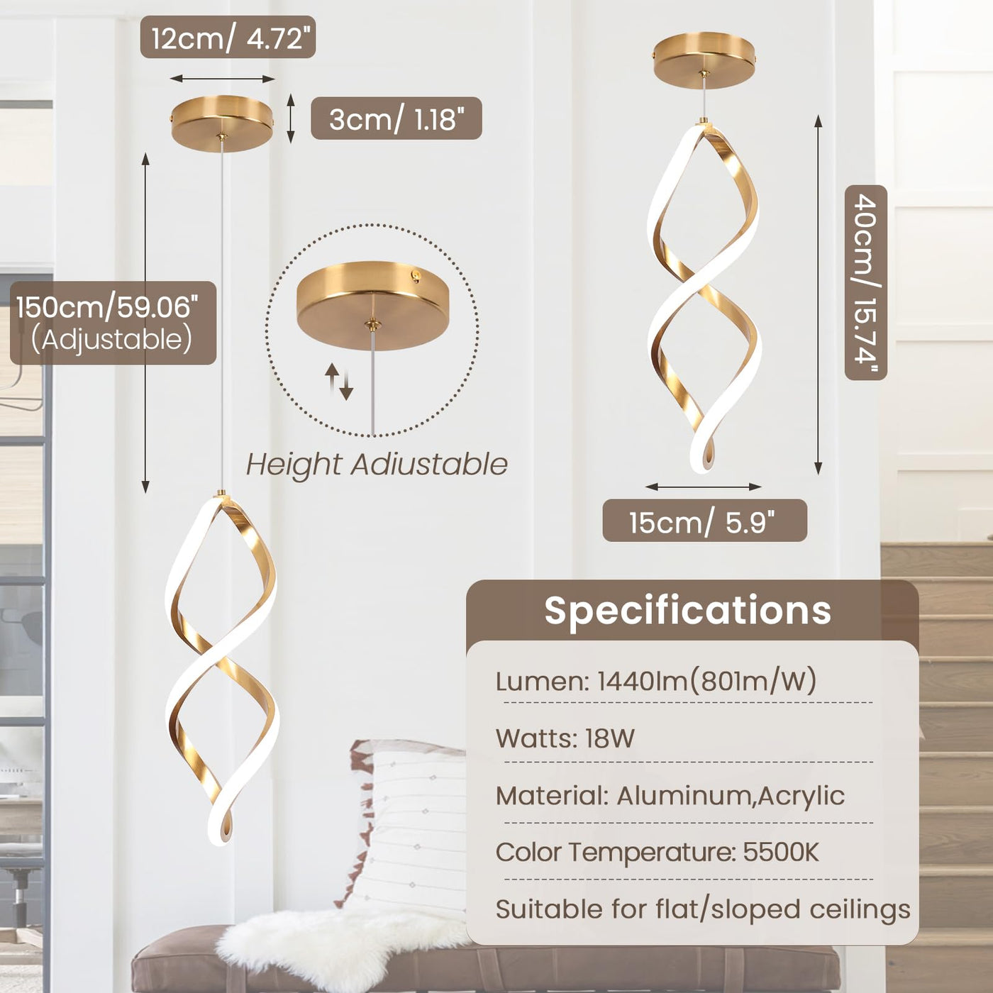 Q: What is the height adjustment range for the Vloitgol Gold Led Pendant Light?A: The Vloitgol Gold Led Pendant Light features an adjustable height range from 17.7 inches (45 cm) to 70 inches (180 cm), making it suitable for various ceiling heights and allowing you to customize its position according to your needs.