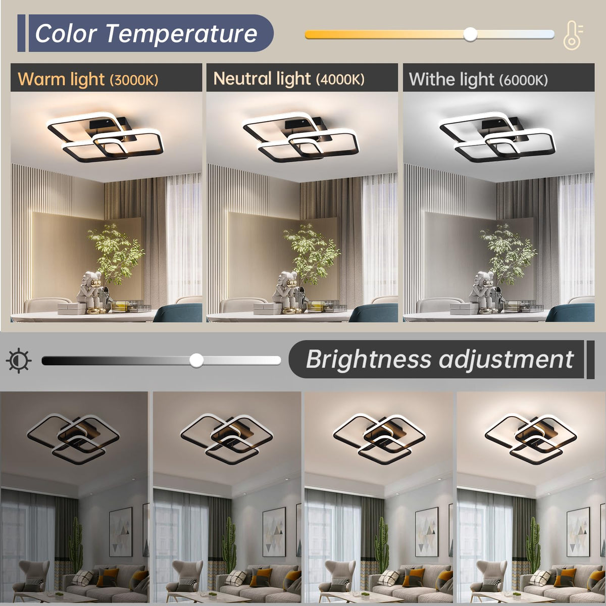 Vloitgol Modern Ceiling Light,Dimmable Black Led Ceiling Light Fixtures With Remote Control,Square Flush Mount Ceiling Lamp For