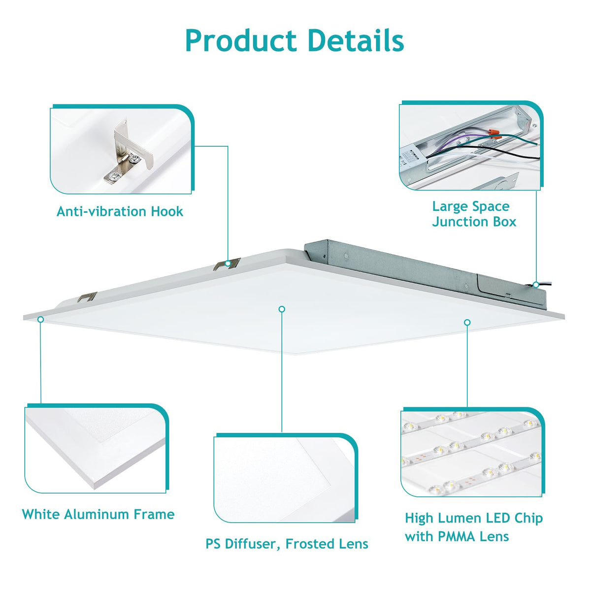 Experience Ultimate Lighting Control With Our 2X2 Led Flat Panel Light. Choose From Three Color Temperatures - Warm White (3000K), Neutral White (4000K), And Daylight (5000K) - To Suit Your Mood And Space. Effortlessly Dim From 0 To 100% With Compatibility For Standard 0-10V Dimmers, Ensuring A Flicker-Free And Buzz-Free Ambiance. The High-Quality Pmma Lens Guarantees Longevity And Clarity, While The Easy Installation Process Makes Setting Up A Breeze. Etl Listed, This Light Fixture Is Your Safety Defender. Illuminate Your World With Precision And Peace Of Mind.