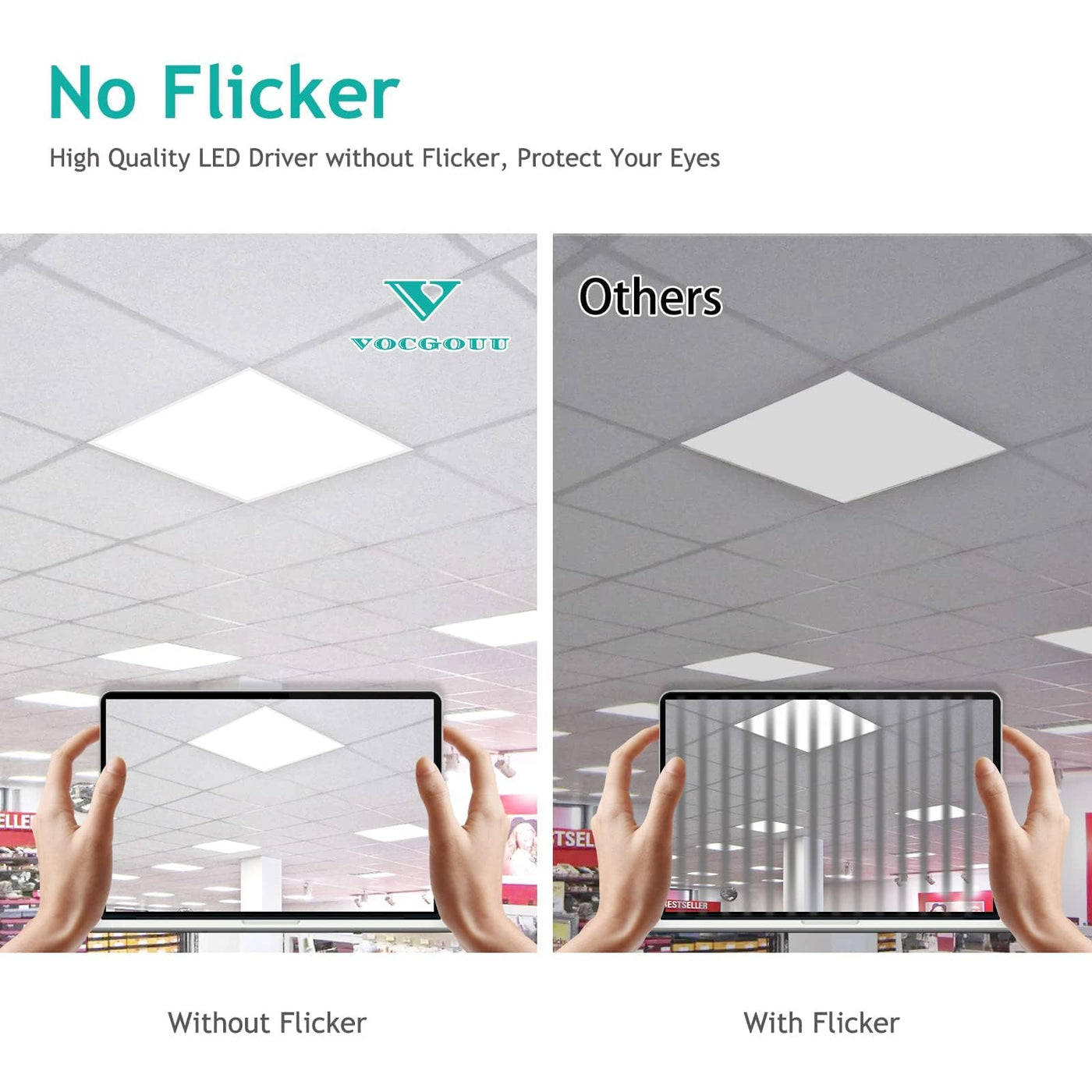 Vocgouu 24-Pack 2X2 Led Flat Panel Light Drop Ceiling Fixture, 3Cct Selectable (3000K/4000K/5000K) & 40W 30W 20W Switchable, 0-1