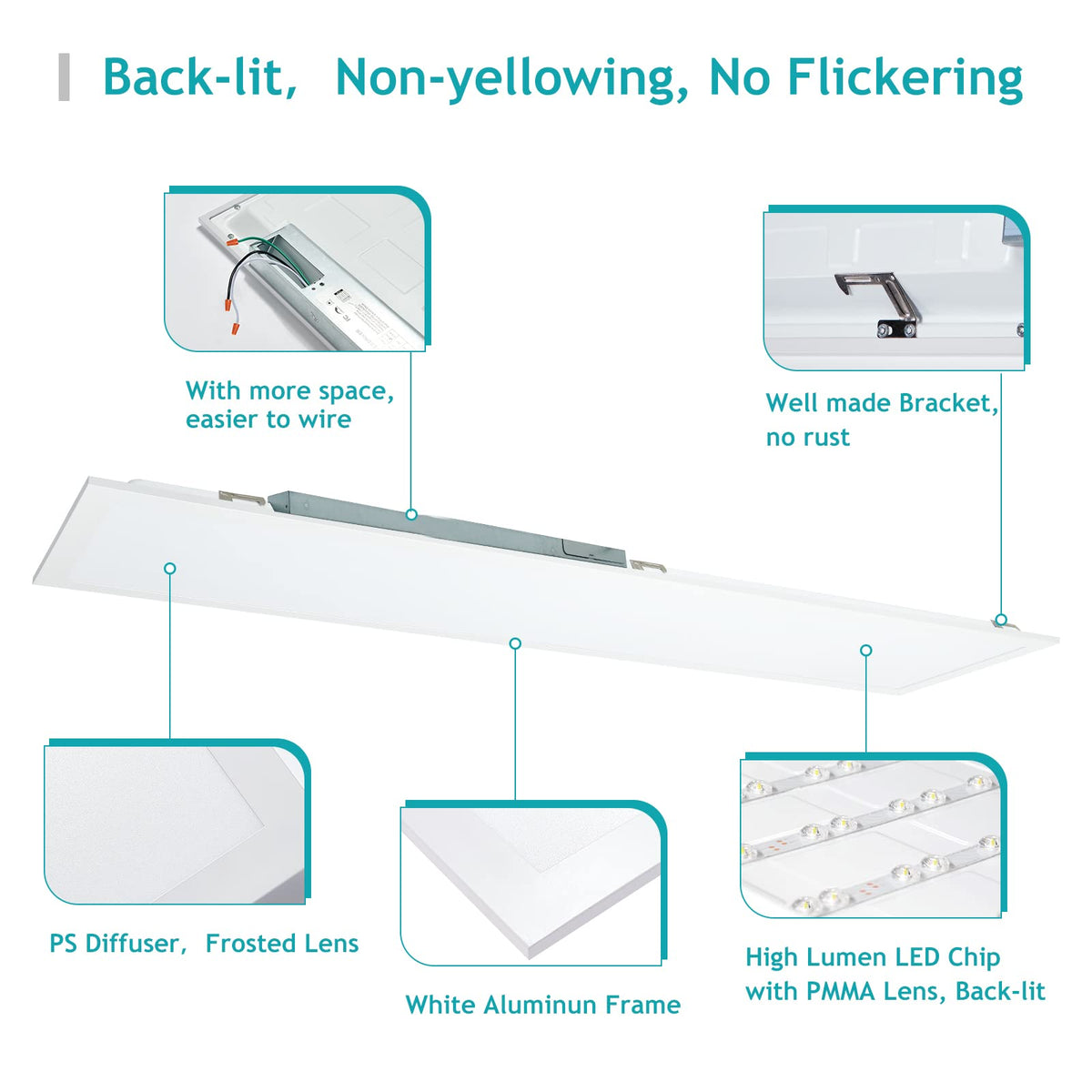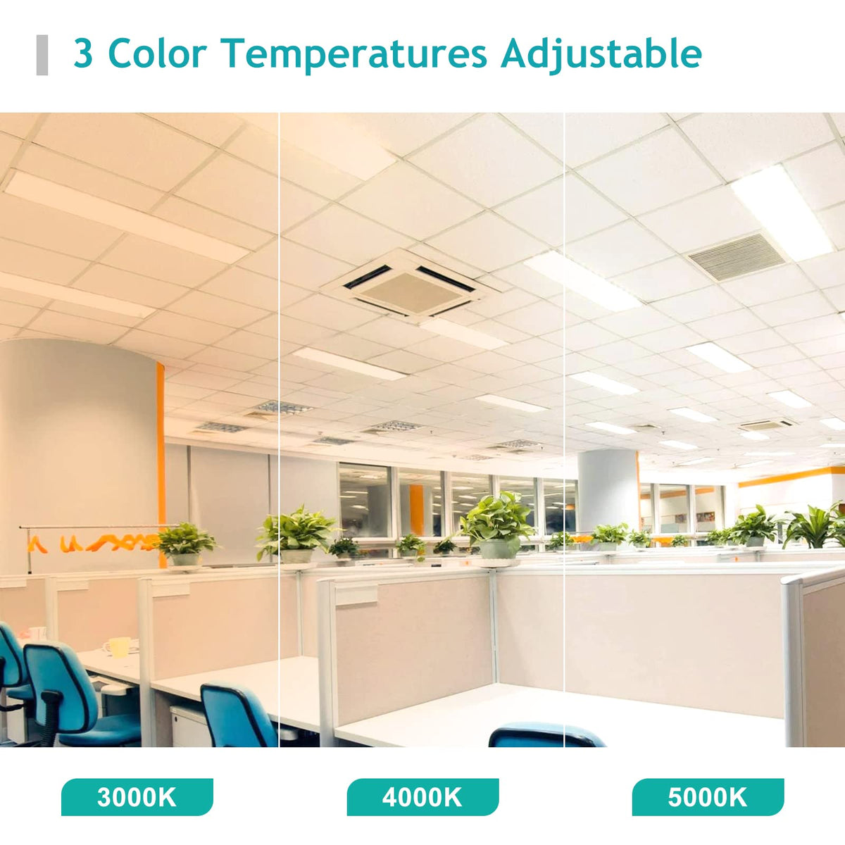 Q: What are the different color temperatures available for the VocgoUU LED Flat Panel Light?A: The VocgoUU 4-Pack LED Flat Panel Light offers three color temperature options: 5000K (cool white), 4000K (neutral white), and 3000K (warm white), allowing you to select the perfect ambiance for any space.