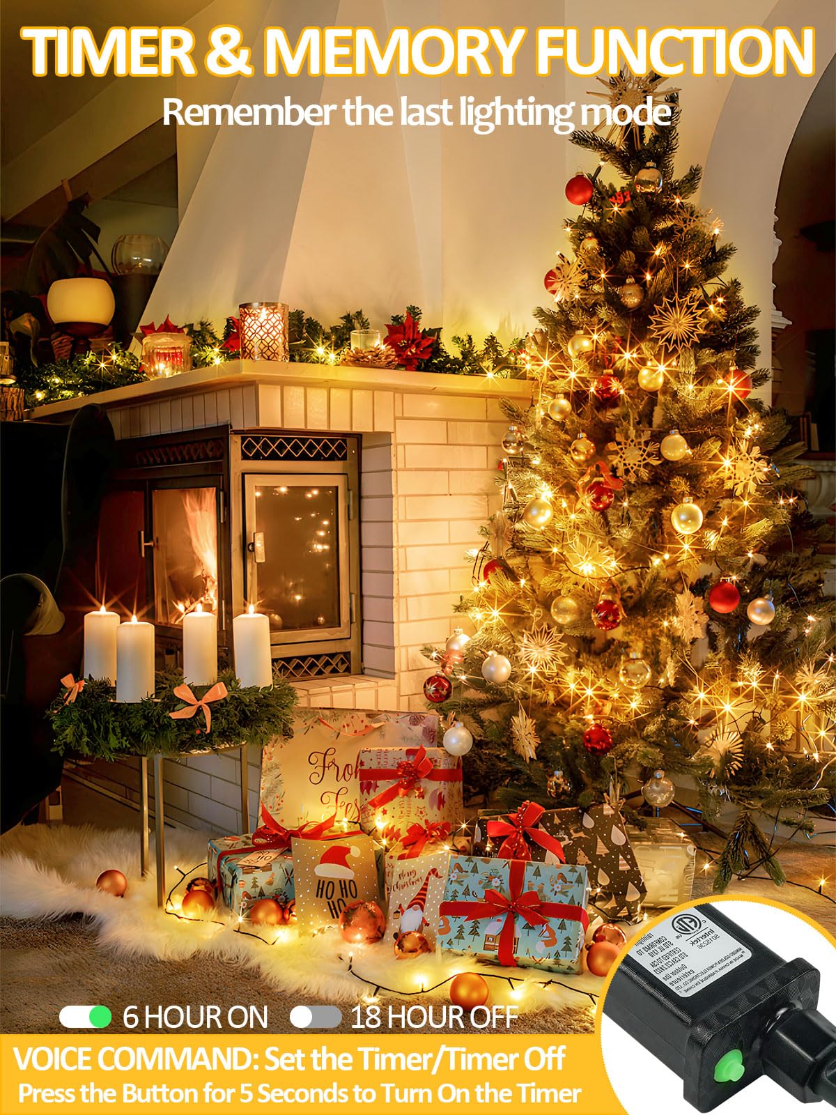 Voice Controlled Smart Christmas Lights Outdoor 108.8Ft 300 Led Twinkle String Light With 7 Voice Commands 12 Modes & Timer Dimmable Waterproof Christmas Tree Lights For Party Garden (Warm White)