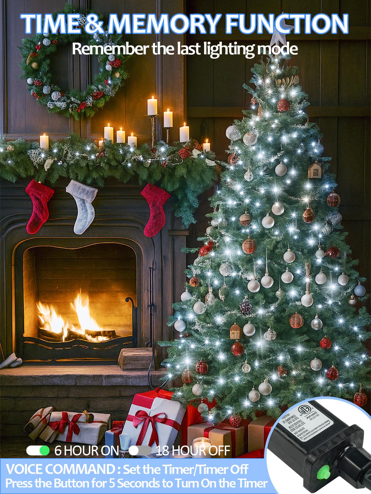 Voice Controlled Christmas Lights 75.8 Ft 200 Led Extendable Twinkle String Light Waterproof Xmas Fairy Lights Outdoor/Indoor With 12 Modes Timer & Memory For Christmas Tree Decorations (Cool White)