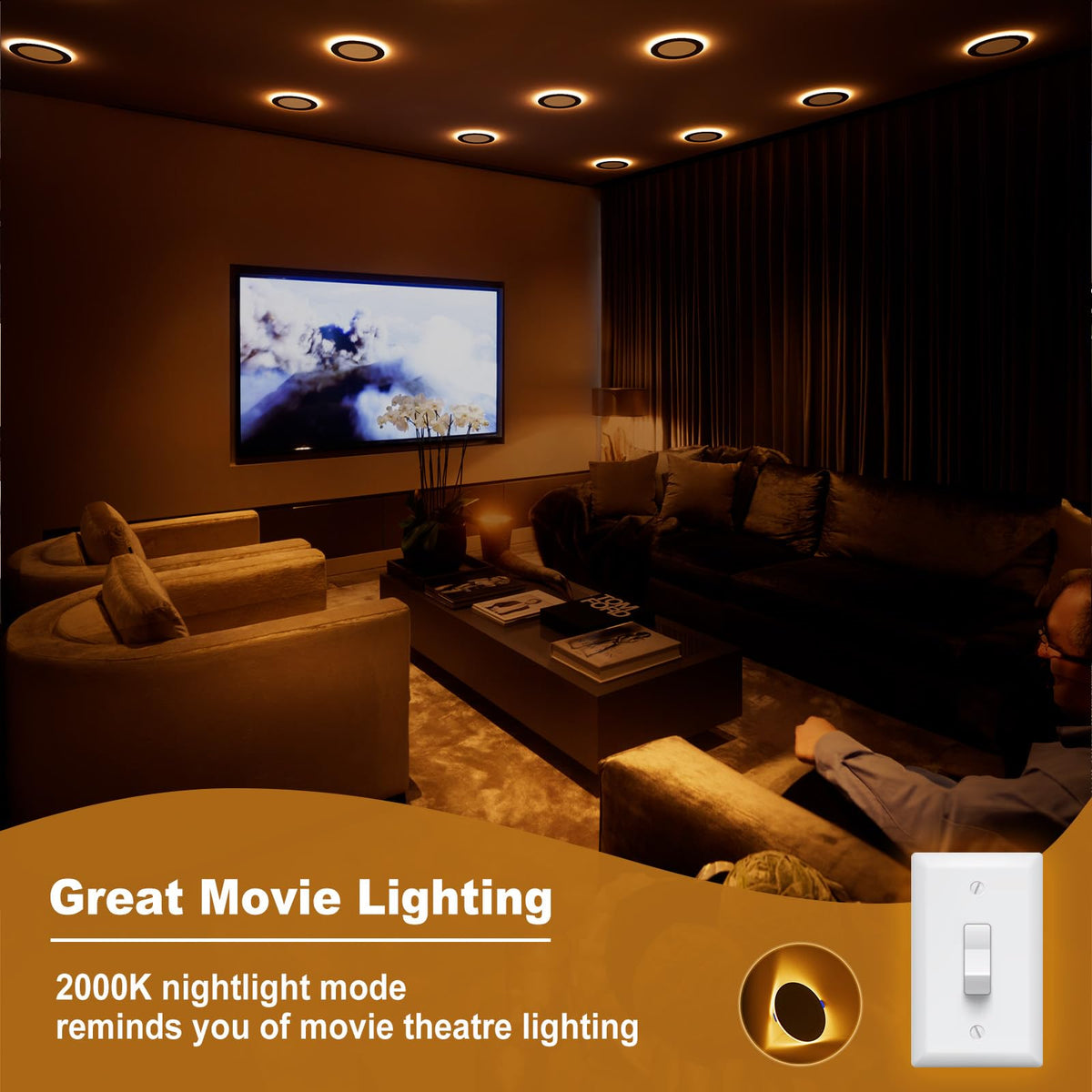 Q: What is the night light feature of the VOLISUN recessed light?A: The VOLISUN recessed light includes a night light feature that emits a soft amber glow at 2000K color temperature. This feature is activated by your wall switch or dimmer, providing added ambiance and visibility in dark areas.