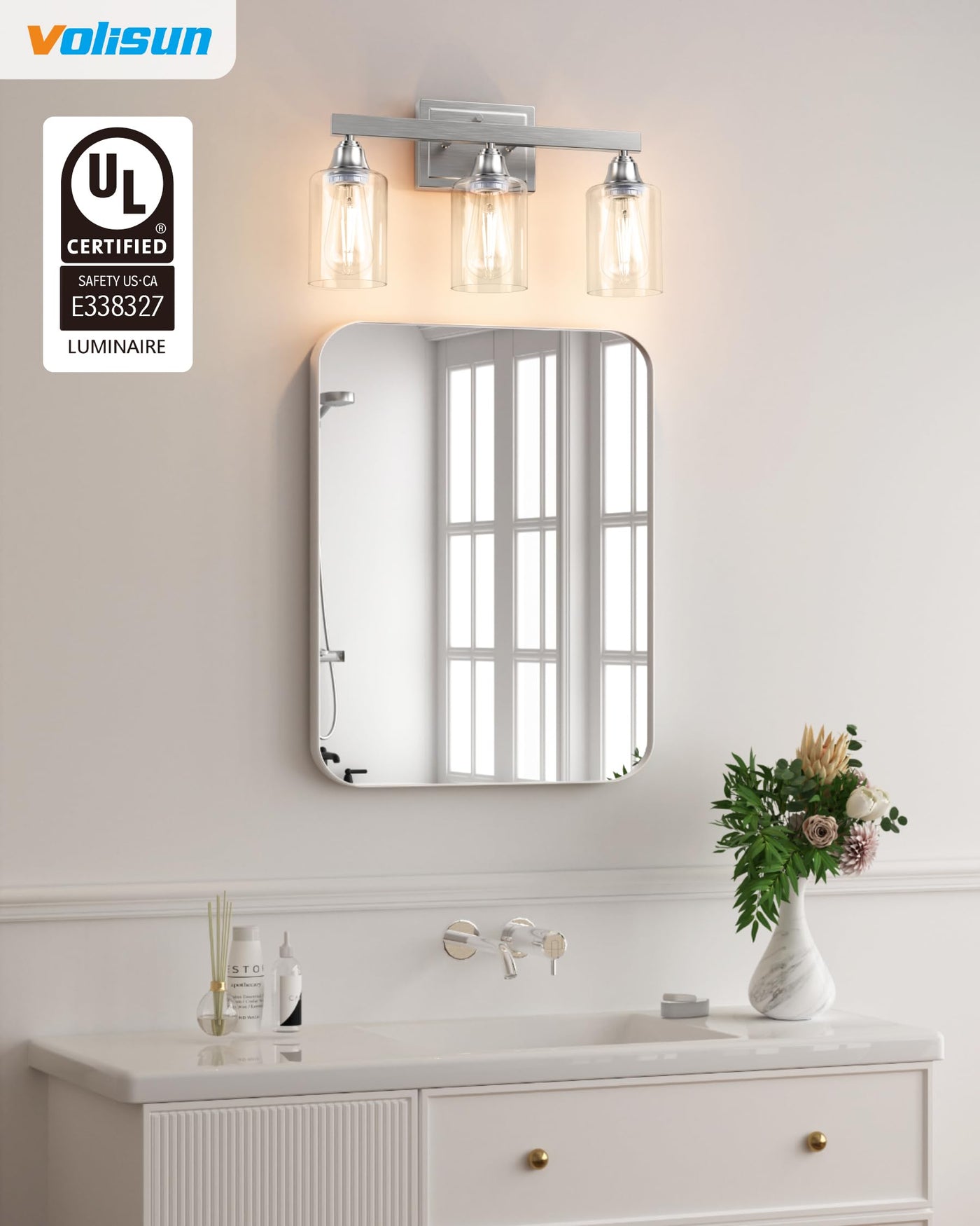 Volisun 3-Light Bathroom Light Fixtures, Brushed Nickel Bathroom Vanity Light Over Mirror, Modern Vanity Light For Bathroom, Bat