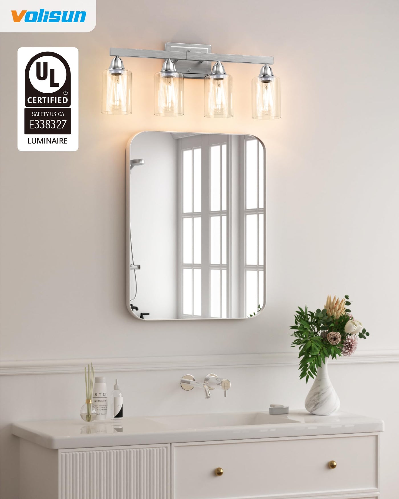 Volisun 4-Light Bathroom Light Fixtures, Brushed Nickel Bathroom Vanity Light Over Mirror, Modern Vanity Light For Bathroom, Bat