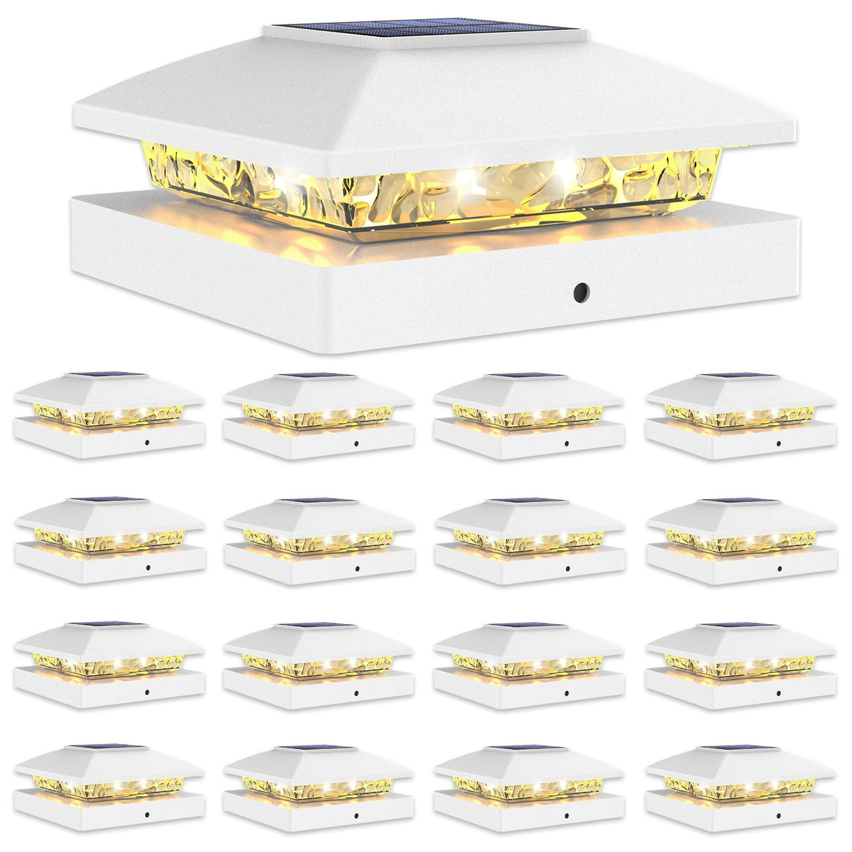 Volisun 4X4 Solar Cap Lights 16-Pack, Outdoor Waterproof For Wooden/Vinyl Posts, White Deck Lights Solar Powered, Warm White For