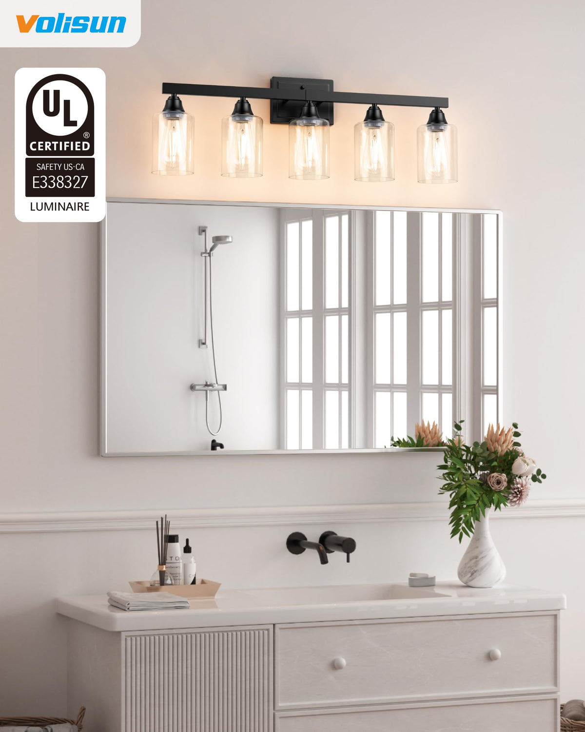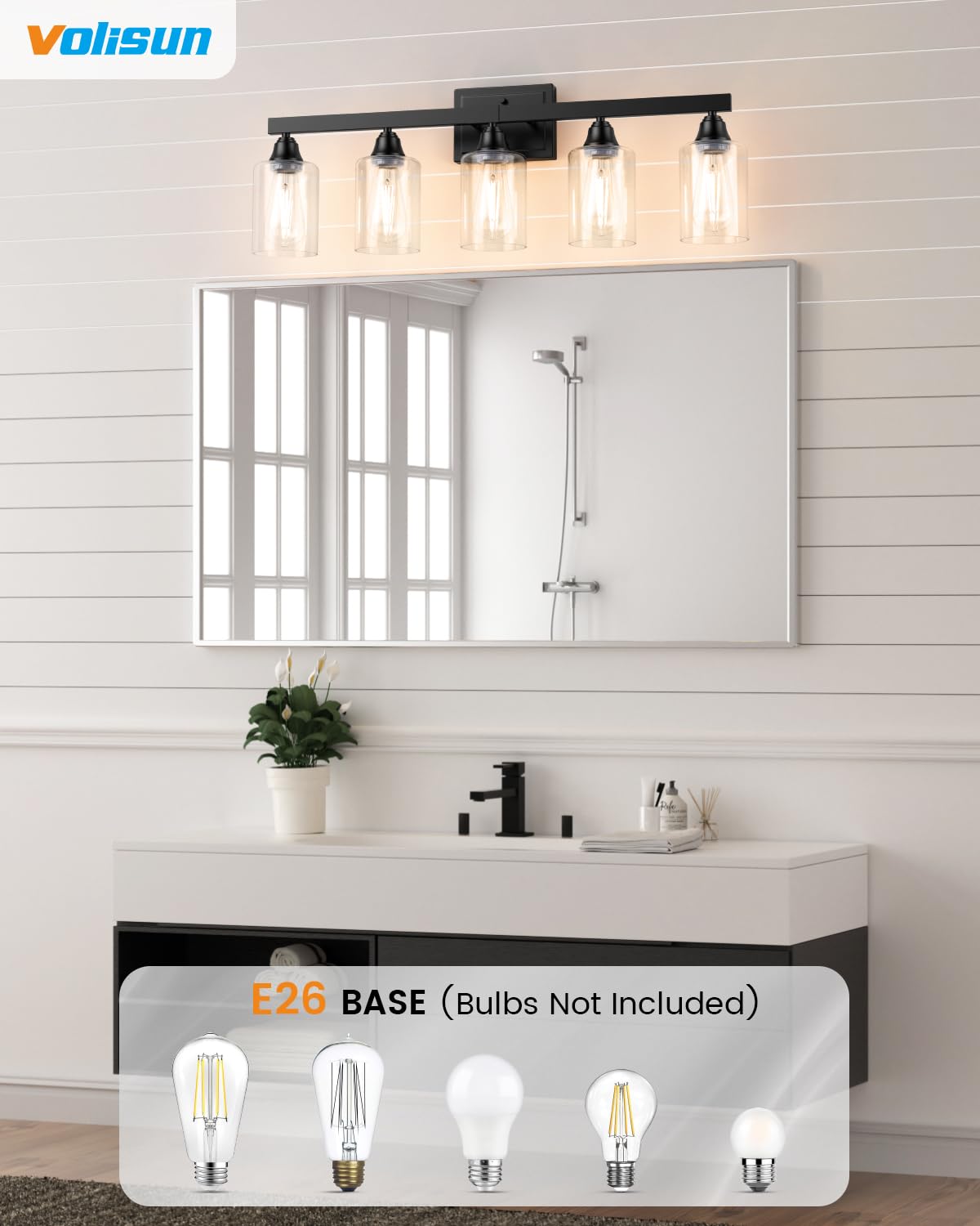 Volisun 5-Light Bathroom Light Fixtures, Matte Black Bathroom Vanity Light Over Mirror, Modern Vanity Light For Bathroom, Bathro