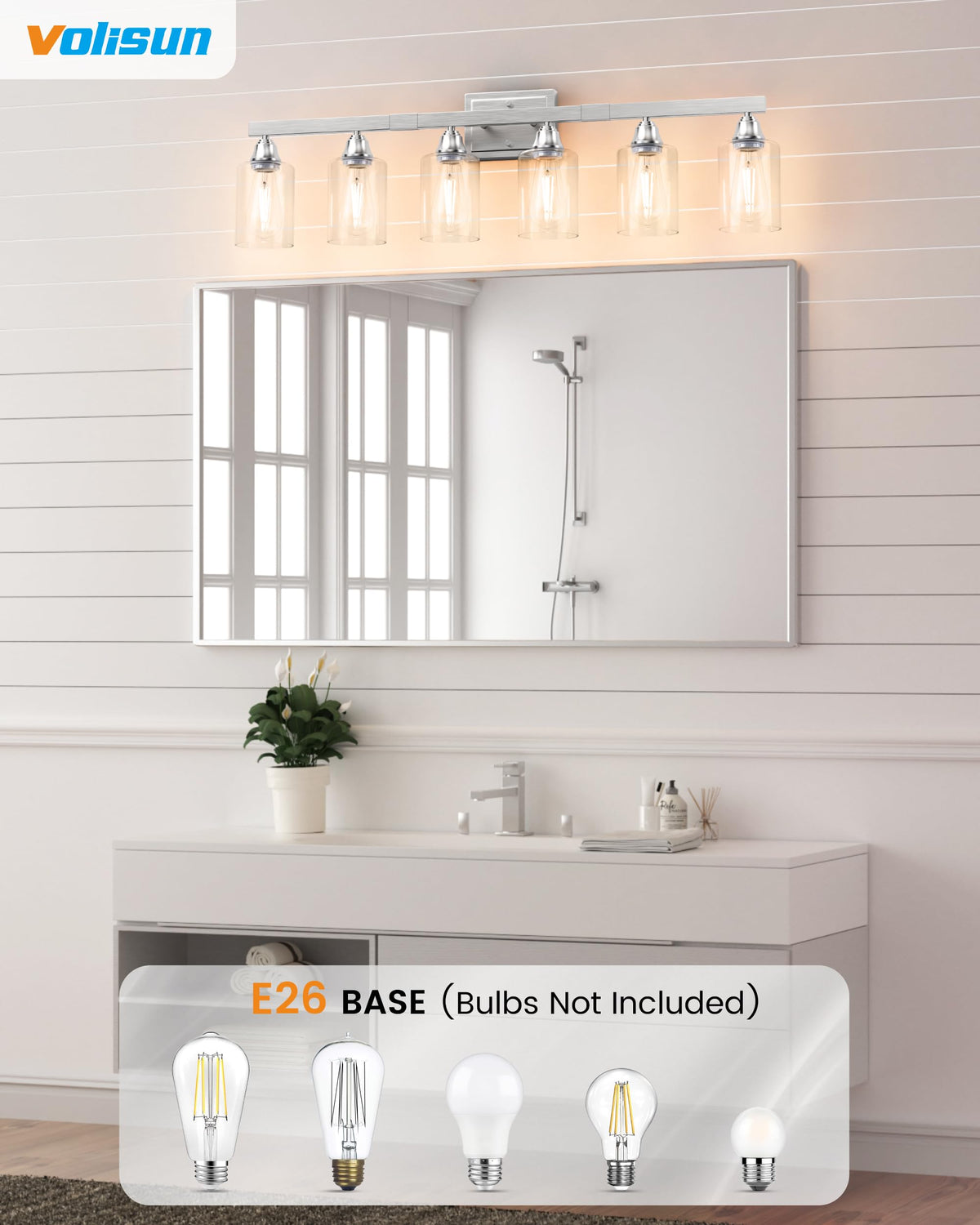 Volisun 6-Light Bathroom Light Fixtures, Brushed Nickel Bathroom Vanity Light Over Mirror, Modern Vanity Lights For Bathrooms, B