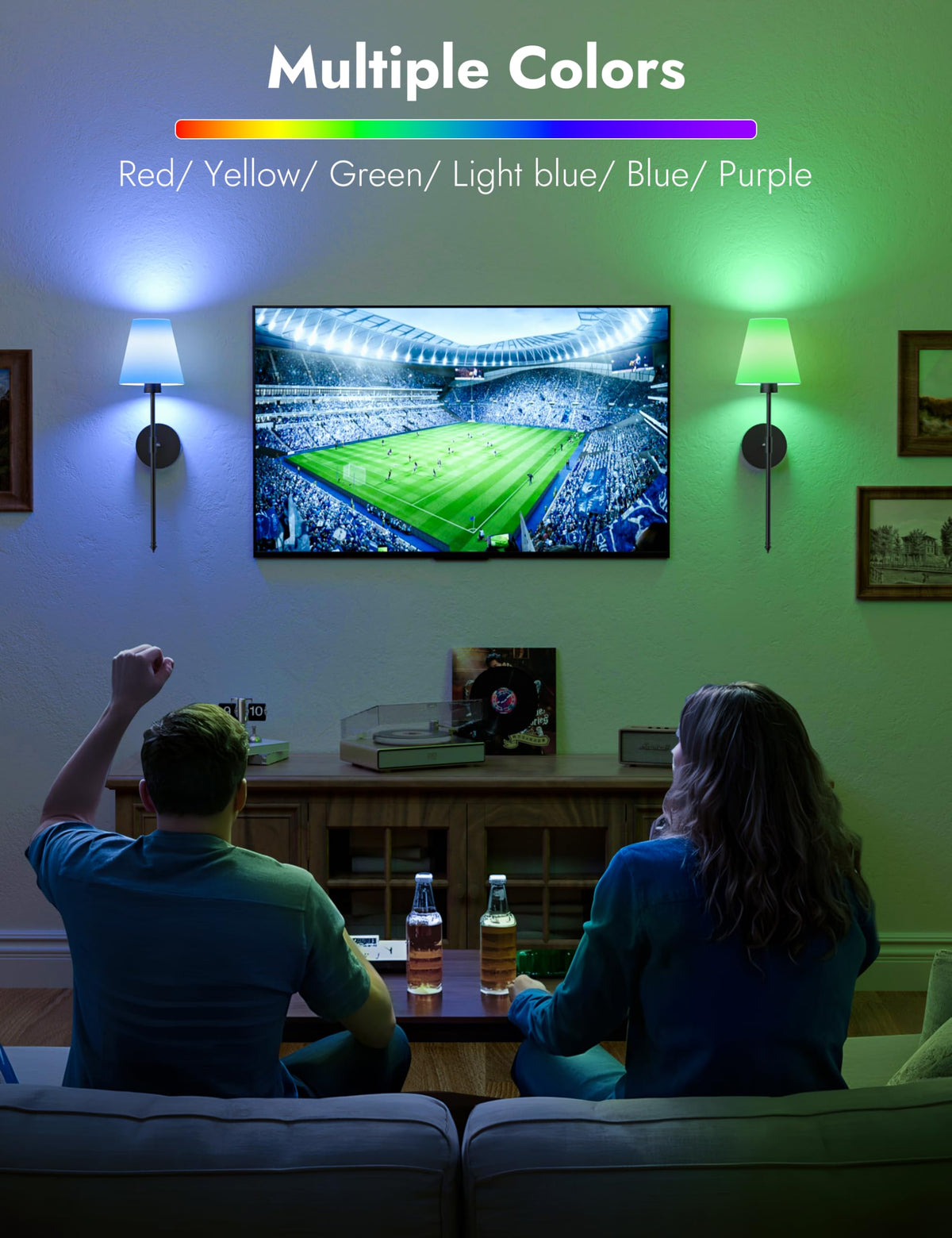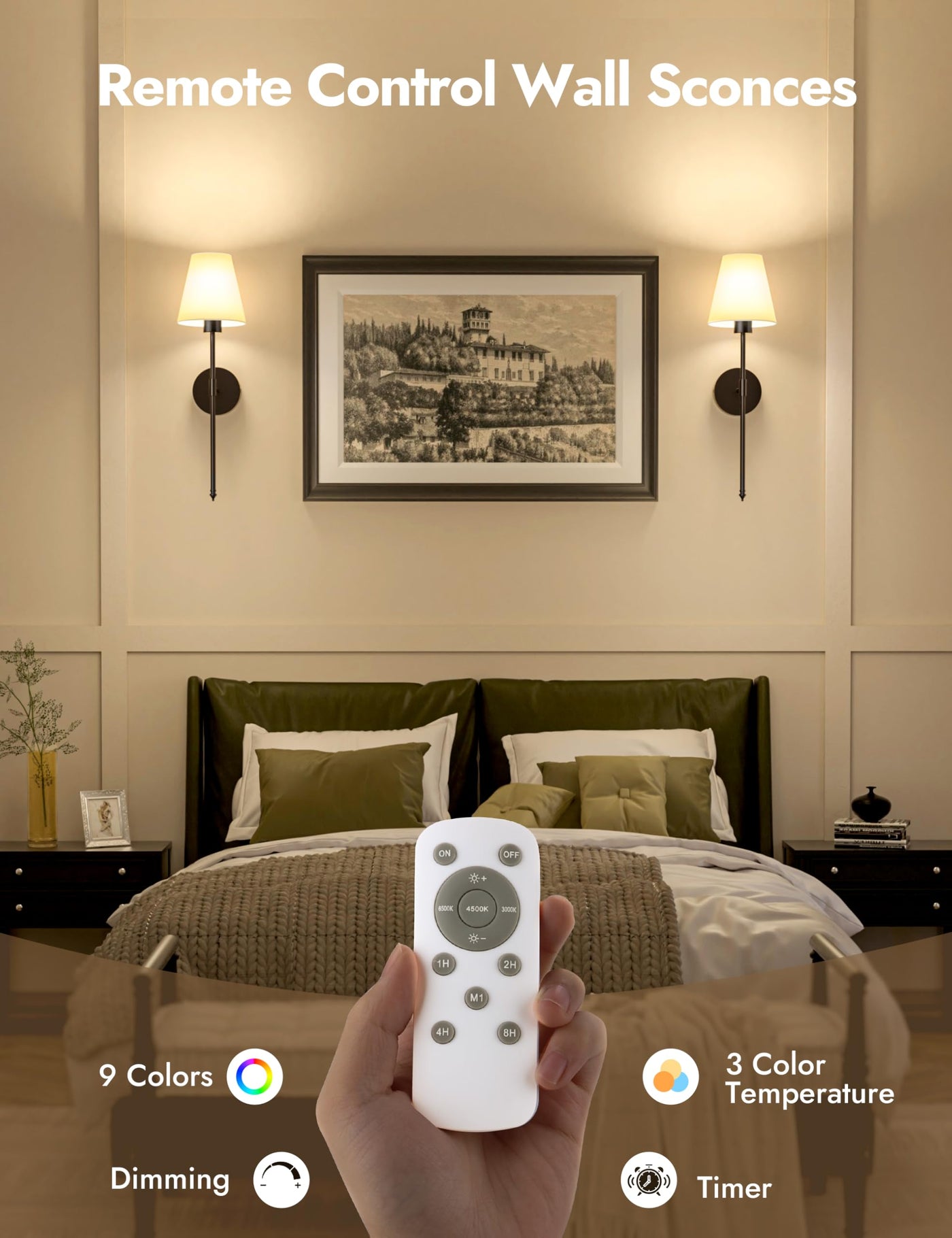 Volisun Battery Operated Wall Sconces Set Of Two, Wireless Wall Sconces With Remote And Dimmable Bulbs, 9 Colors Battery Powered