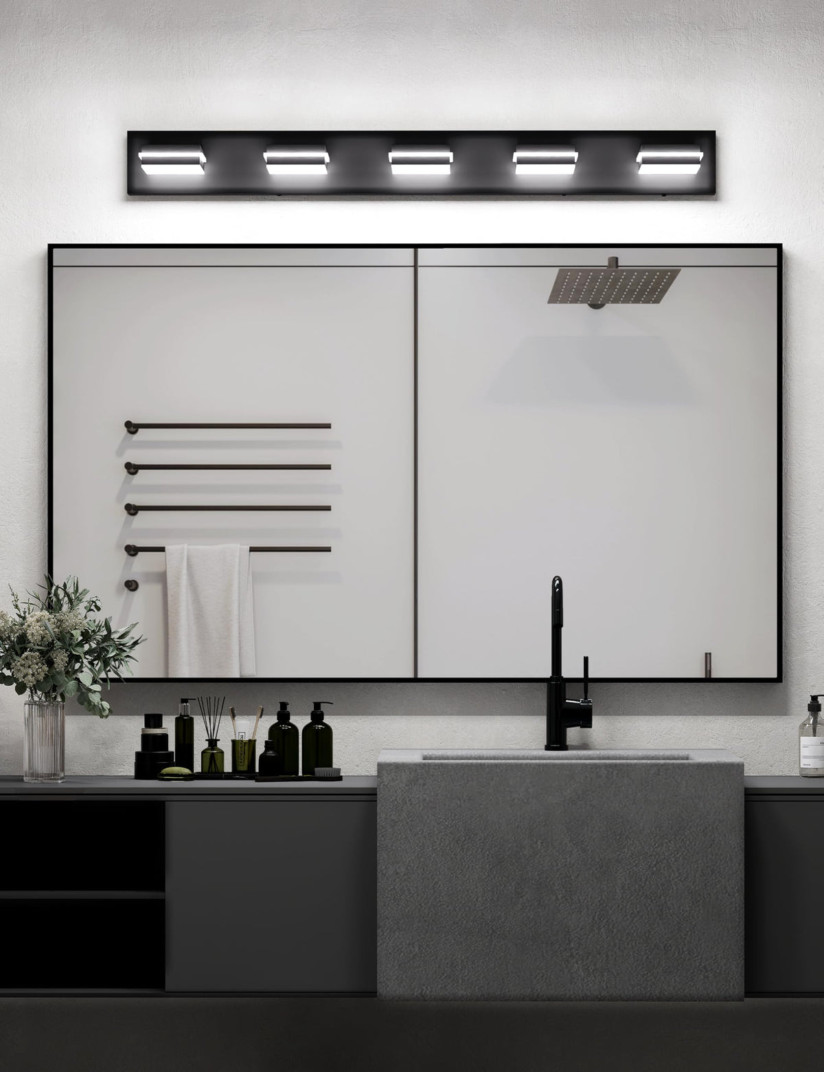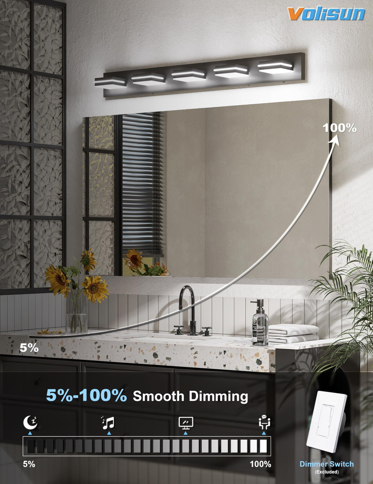 Volisun Modern 5-Light, 40-Inch Black Bathroom Vanity Light Fixtures Over Mirror, 5Cct Dimmable, Energy Efficient, Etl Certifica