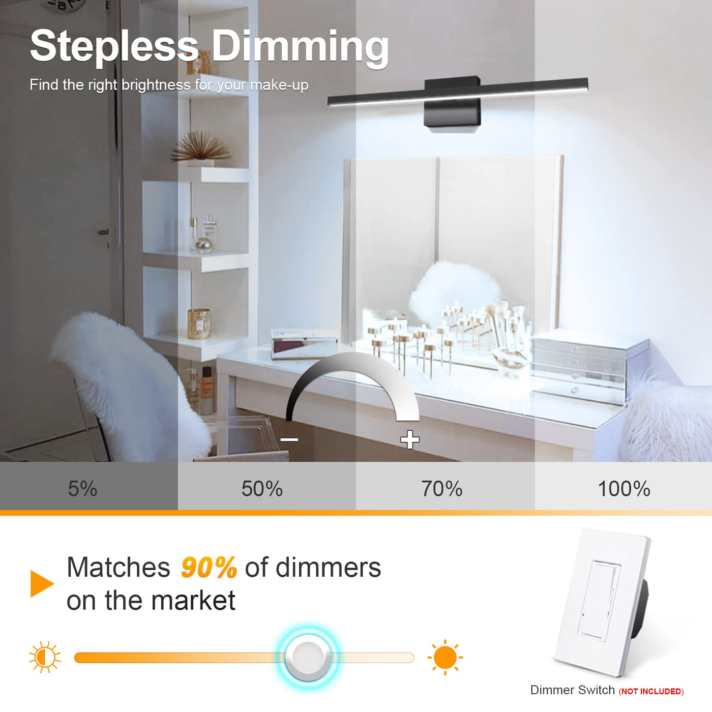Volisun Modern Bathroom Vanity Light Black, Dimmable LED Bathroom Light Fixture over Mirror,5CCT Bathroom Lighting Fixtures Over Mirror, Bar Vanity Lights for Bathroom Mirror Restroom Sink ETL Certificated, Bathroom Wall Light