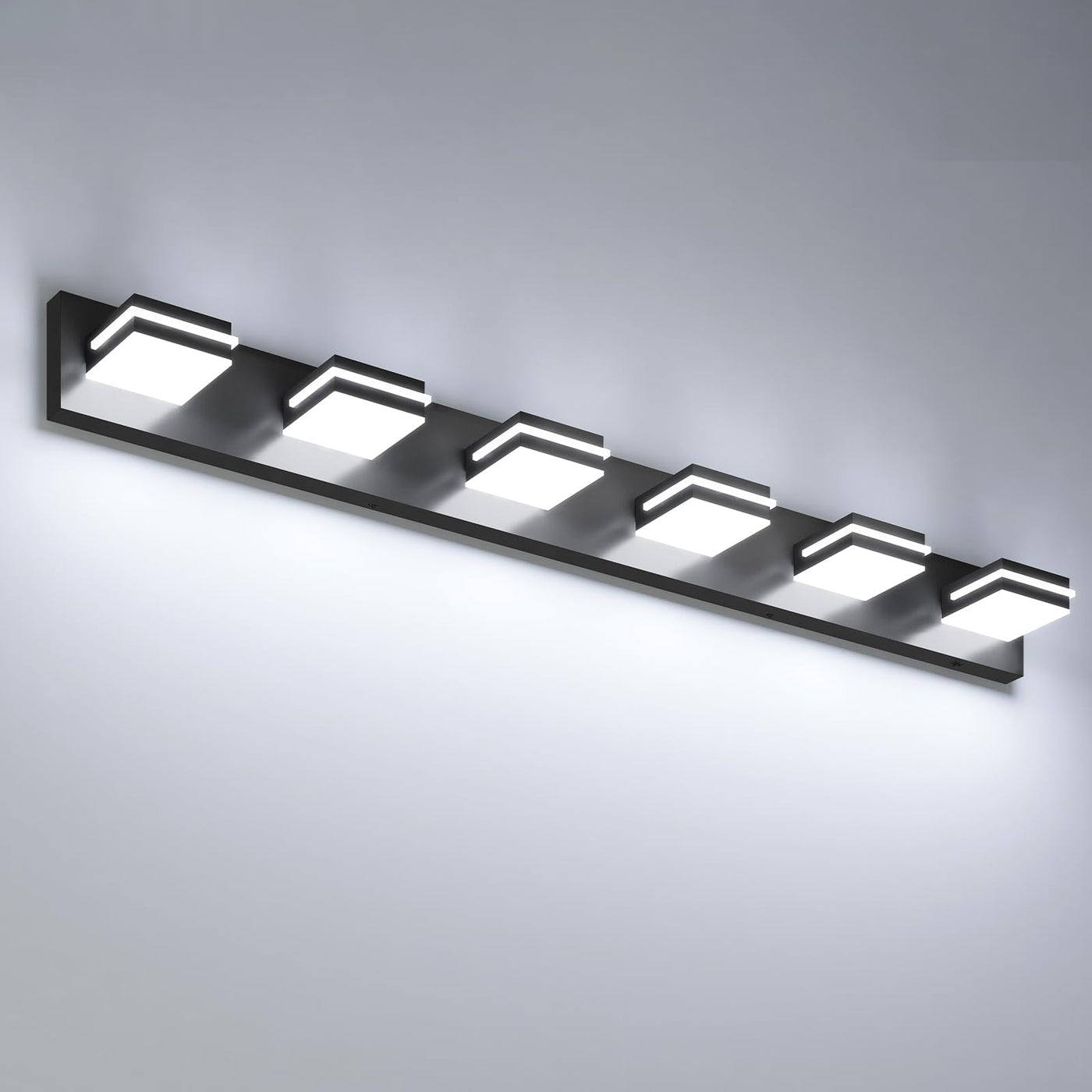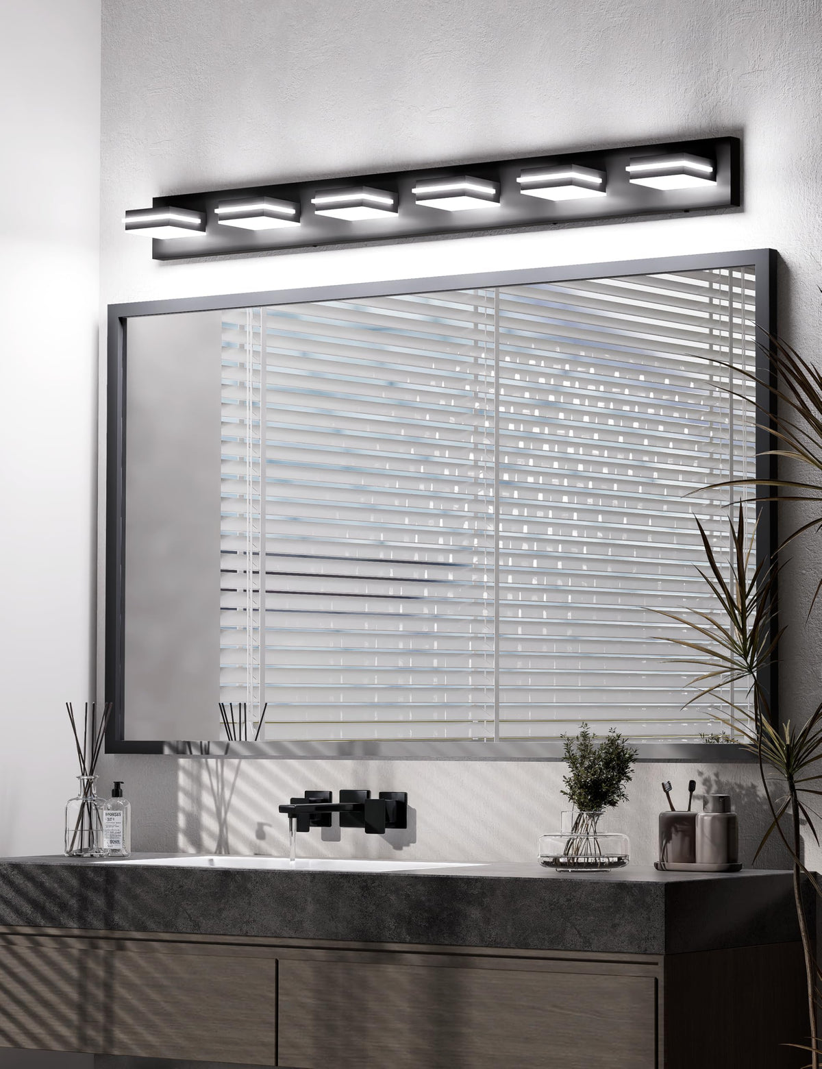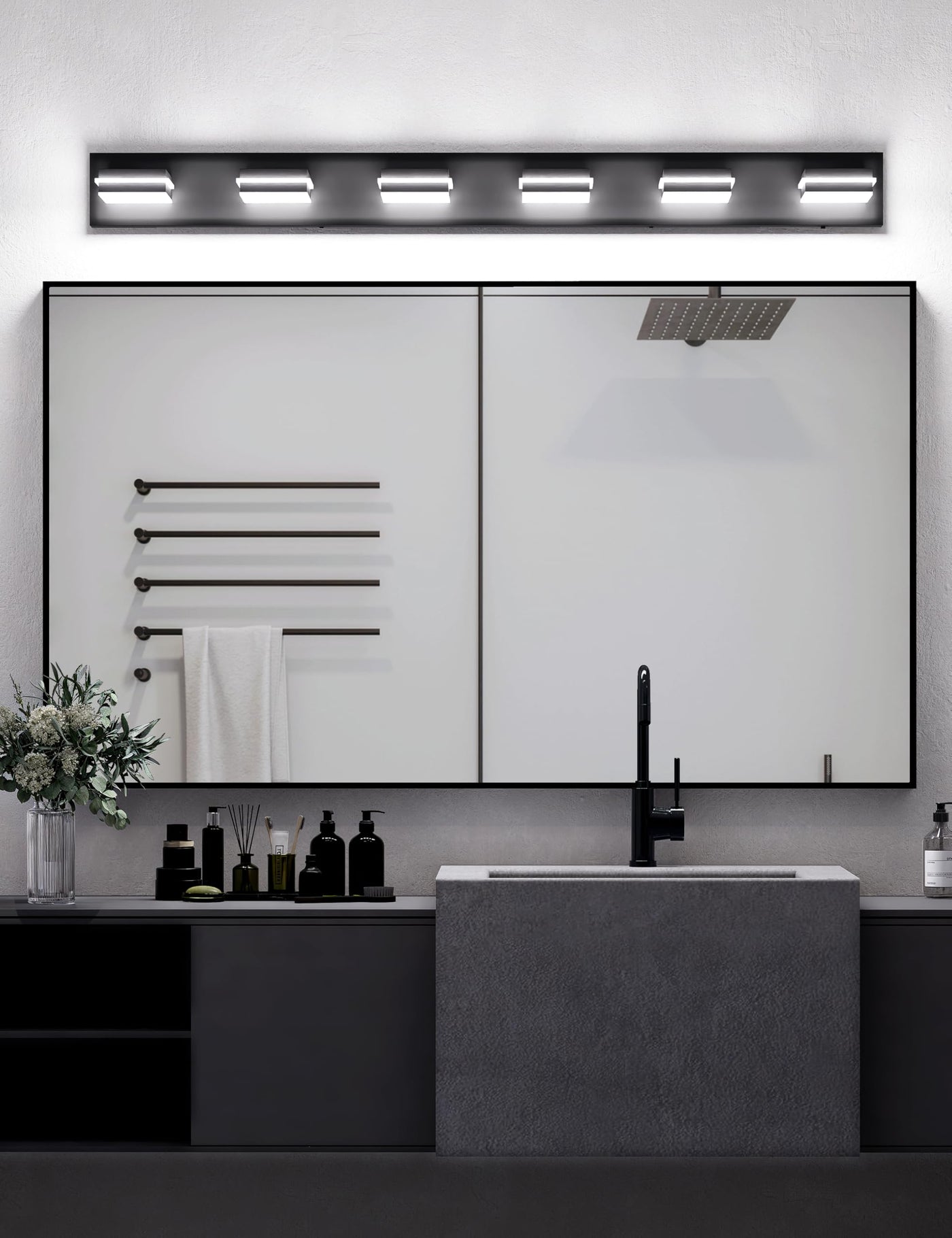 Volisun Modern Bathroom Vanity Light Fixtures (6-Light, 48-Inch), Matte Black Led Bathroom Lighting Fixtures Over Mirror, 360Rot