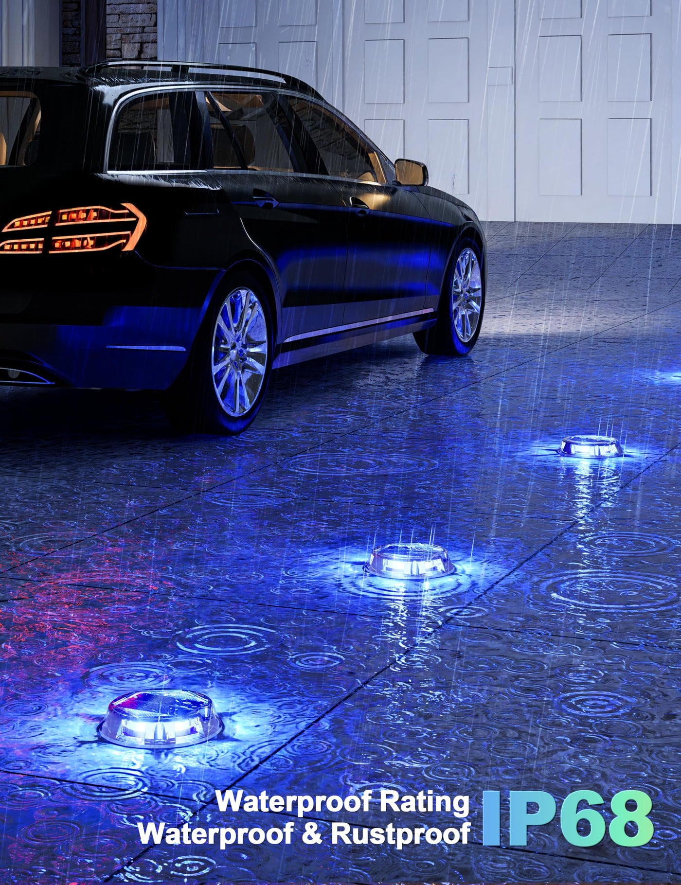 Q: How do these solar lights perform in different weather conditions?A: These lights have an impressive IP67 waterproof rating, making them highly durable and able to withstand harsh weather conditions, including rain and snow. The high-quality cast aluminum construction ensures they can endure the weight of vehicles and continue to function reliably.