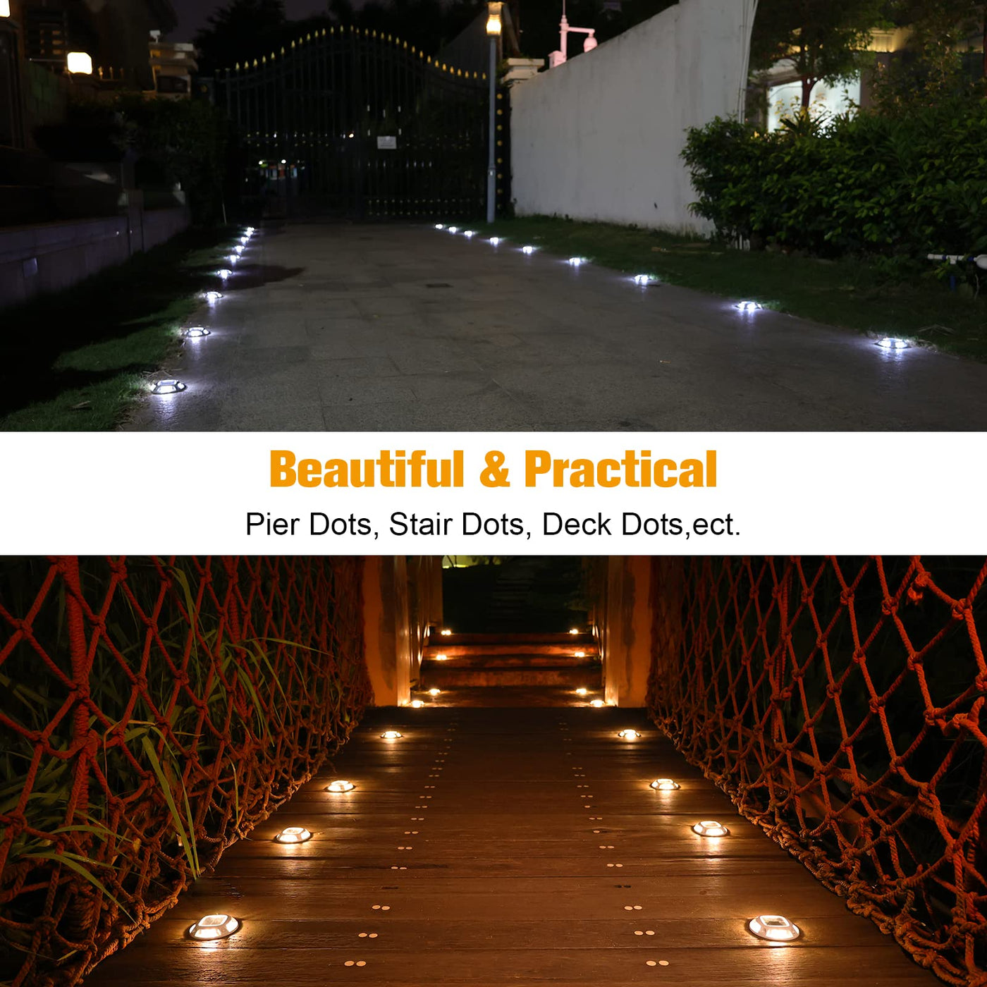 Volisun Solar Driveway Dock Marine Lights 8-Pack,2 Colors In 1,Outdoor Led Deck Lights,Solar Powered Waterproof Warning Step Lig