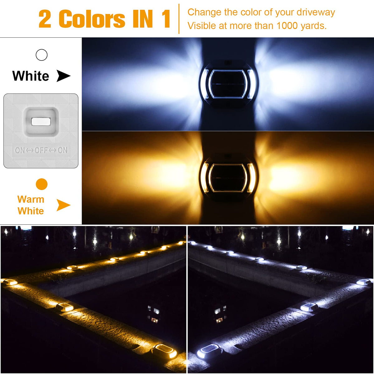 Volisun Solar Driveway Lights Dock Deck Lights 16 Pack,2 Colors In 1,Solar Powered Waterproof Outdoor Warning Step Lights For Dr