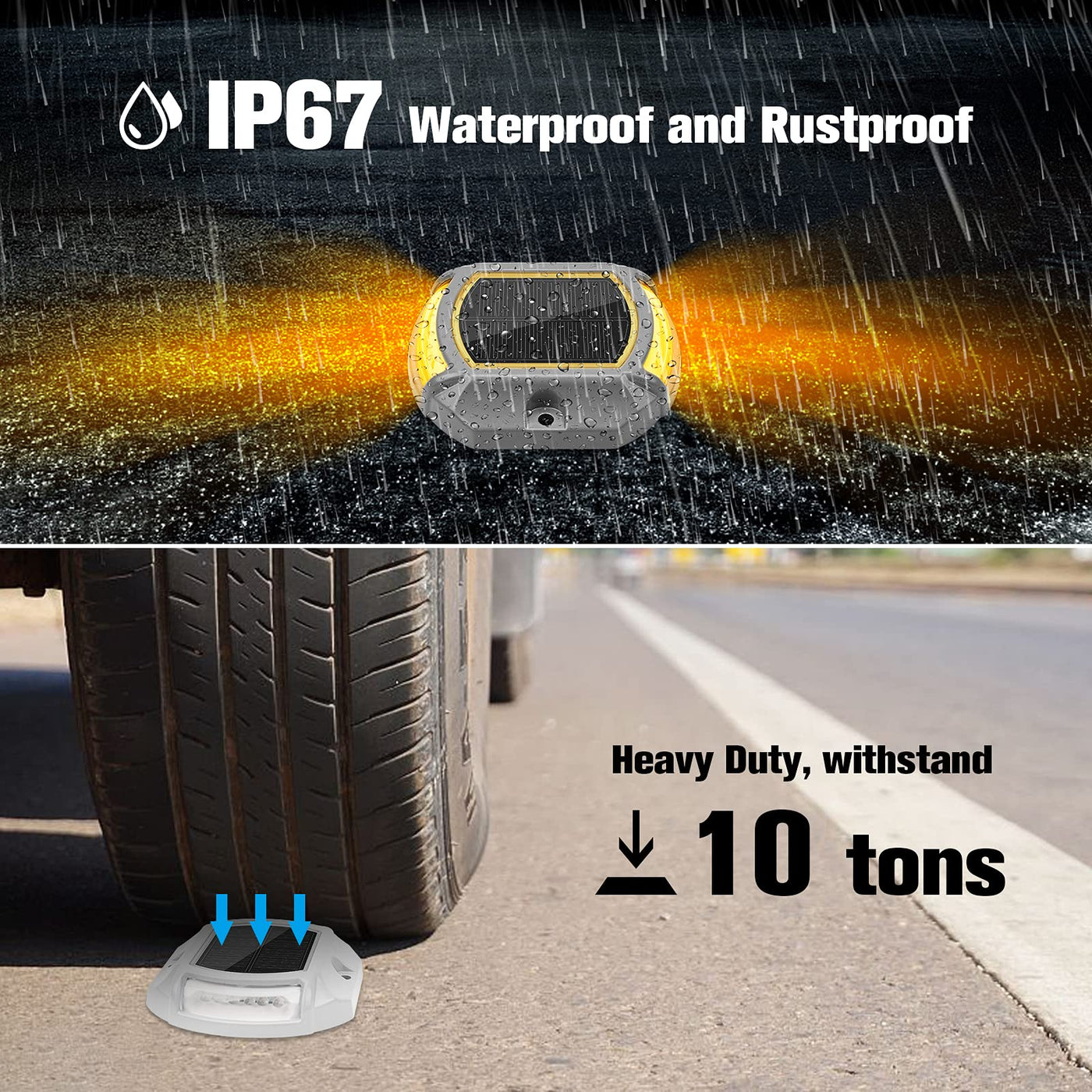 Q: Are these lights durable and resistant to harsh weather conditions?A: Absolutely. The VOLISUN Solar Driveway Lights are designed with an anti-rust cast aluminum shell and have an IP67 waterproof rating, ensuring they are durable and able to withstand harsh weather conditions and heavy pressure.