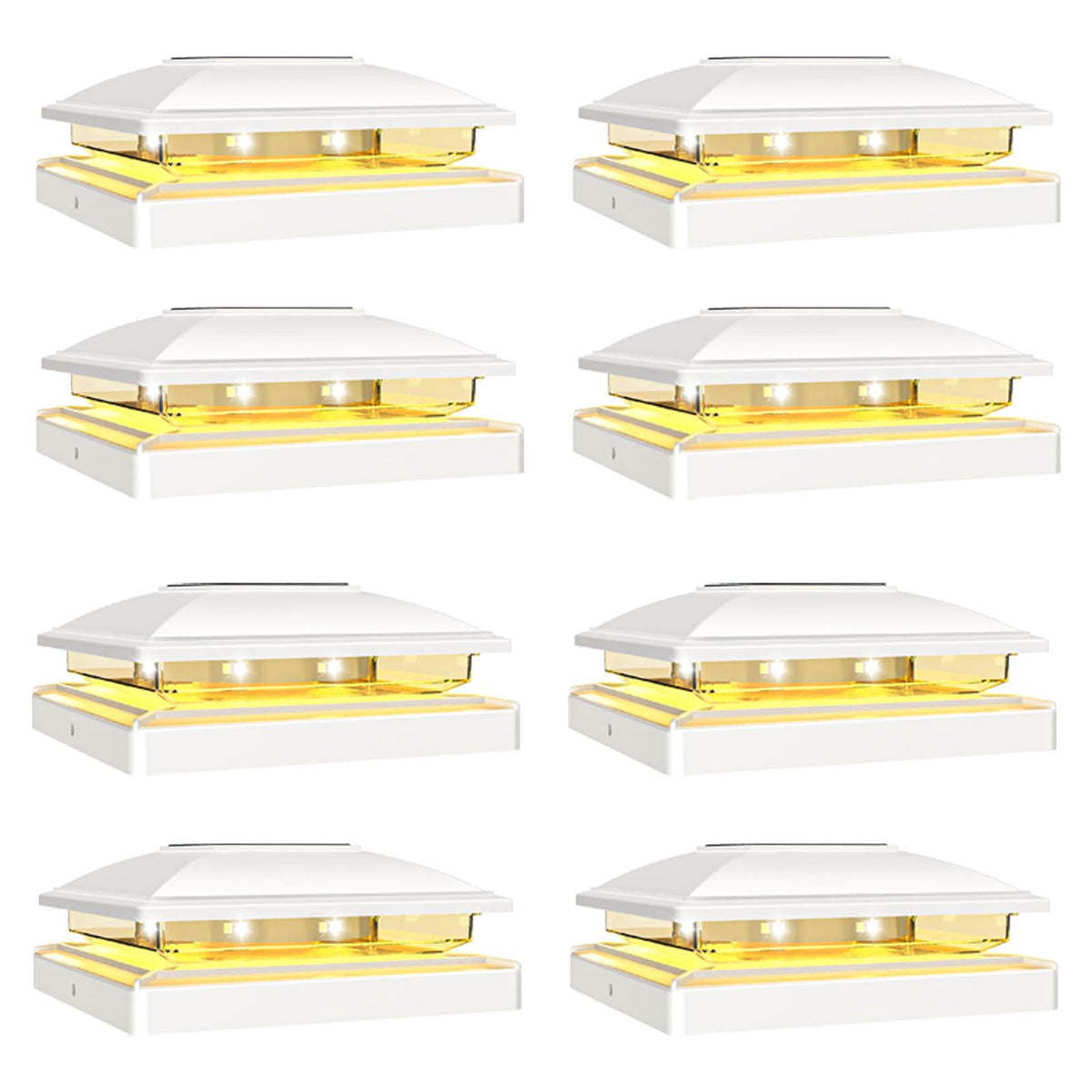 Volisun Solar Post Cap Light Outdoor - Fence Lights Waterproof For 4X4/5X5/6X6 Wooden/Vinyl Posts, White Deck Solar Powered Warm