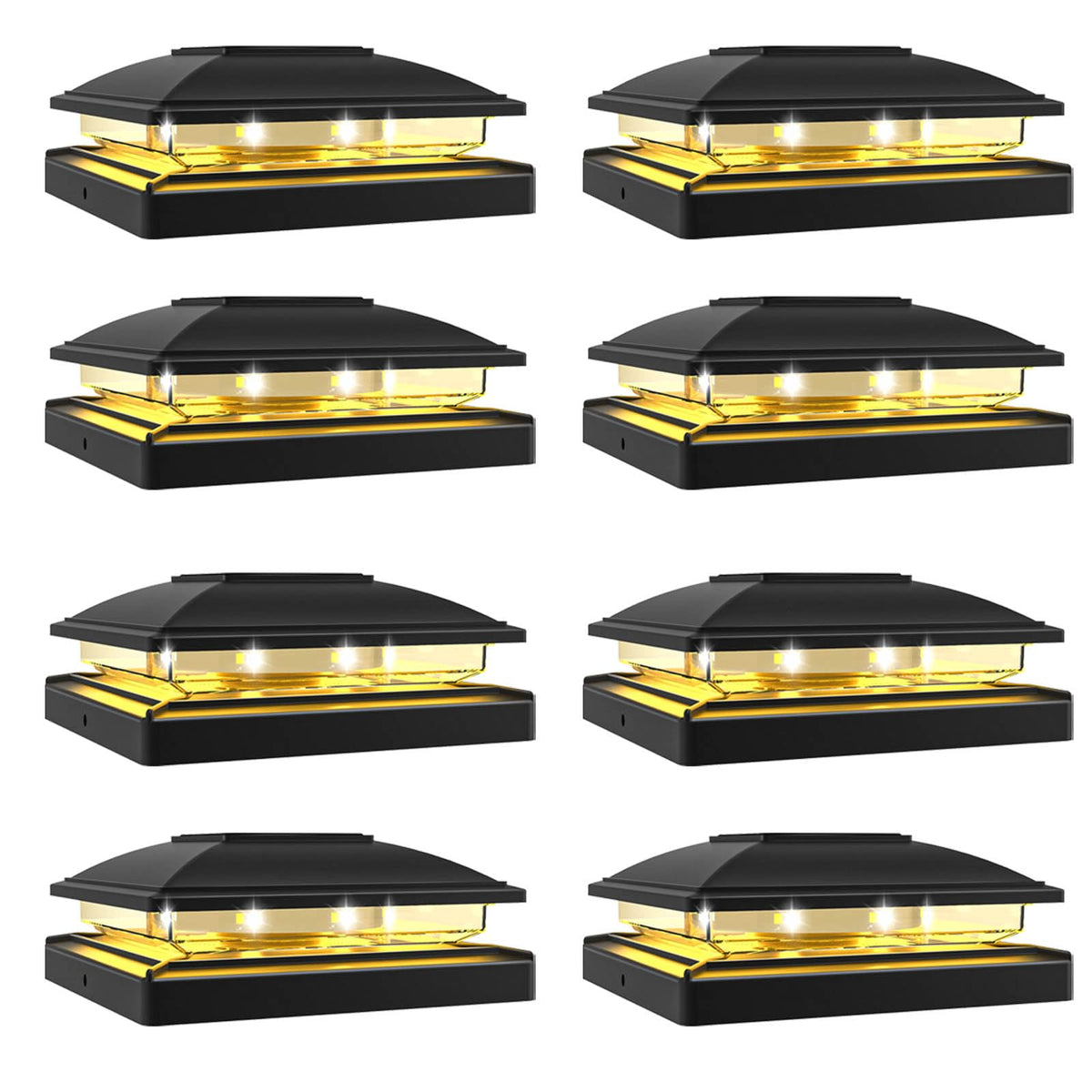 Volisun Solar Post Cap Light Outdoor,Solar Fence - Post Lights Waterproof For 4X4/5X5/6X6 Wooden/Vinyl Post,Black Deck Post Cap