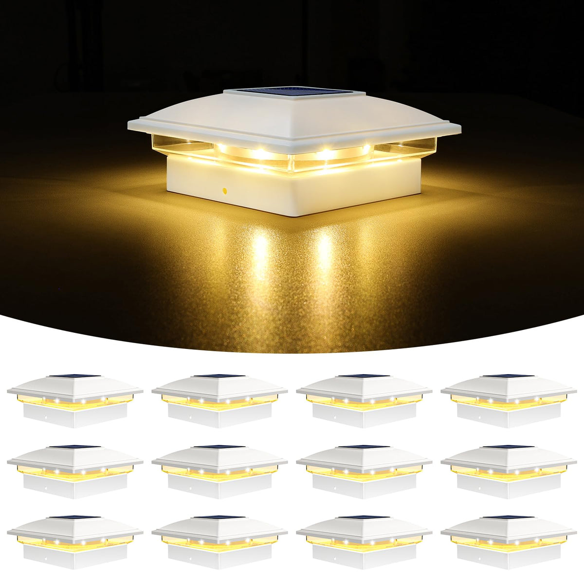 Volisun Solar Post Cap Light Outdoor Waterproof 12Pack,Solar Fence - Post Lights For 4X4 5X5 6X6 Wooden/Vinyl Post,White Deck Po