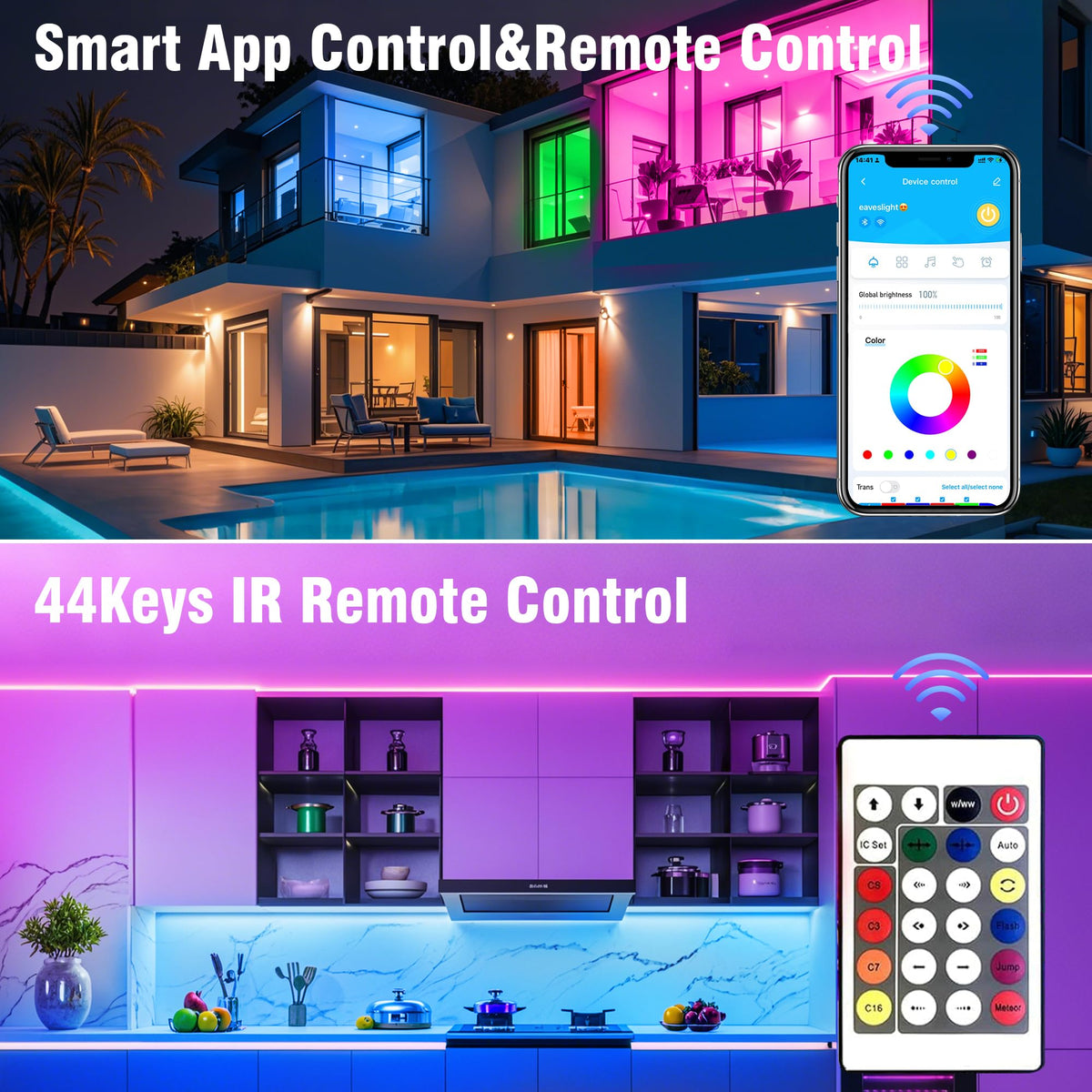 Q: How do I control the VOLIVO 300ft LED Strip Light?A: The VOLIVO LED Strip Light can be controlled in two ways: via a smartphone app or with the included 24-key remote control. Simply download the app, connect your Bluetooth, and you can adjust colors, brightness, and modes easily.