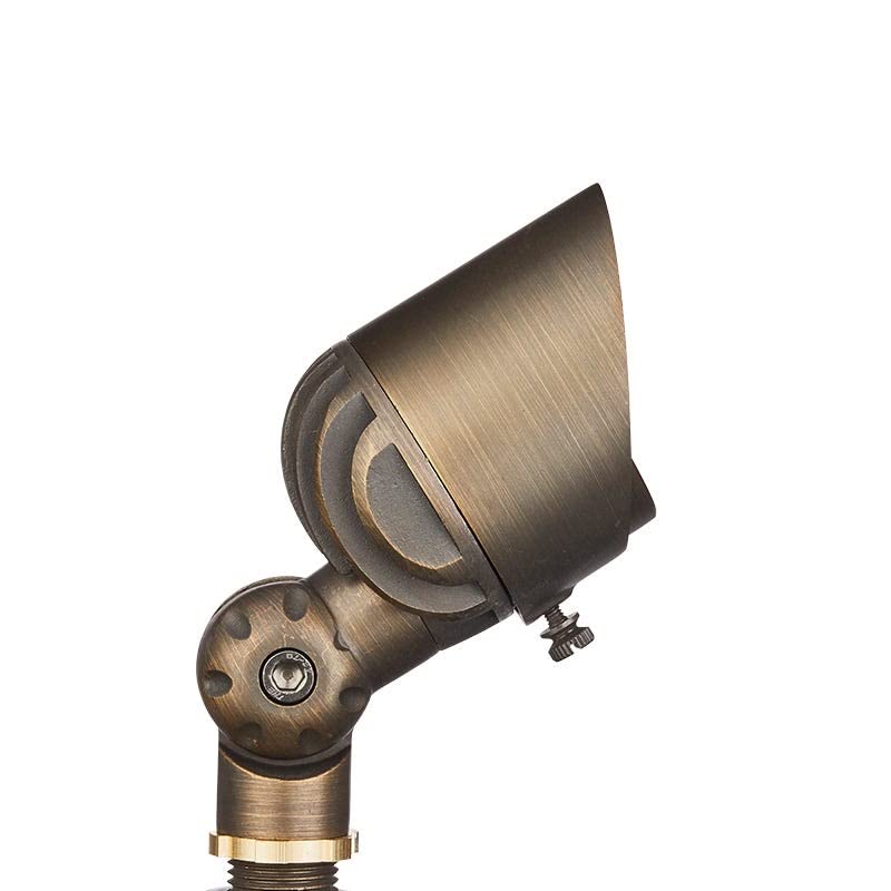 This compact low voltage (12V) spotlight is constructed of cast brass, has a 4-foot lead wire and is ideal for uplighting applications. Its integrated high-performance single source CREE LEDs produce professional grade light output with crisp shadows. Completely sealed to an IP (Ingress Protection) Rating of 65. The first number is for solid intrusion and is a scale from 1-6, with 6 being the highest. It means even the smallest dust partials cannot enter the fixture over time. The second number is the water intrusion rating. The "5" means that even when the fixture was tested with powerful water jets, there was no water intrusion. Our huge 10-inch Hammer State is included to make installation a breeze. Pound this heavy-duty stake into the ground before affixing the fixture. The slit enables you to insert wire and affix fixture after the stake is already in the ground. Plus, unlike smaller stakes that cause tilting due to improper anchoring, our Hammer Stake keeps fixtures secure.