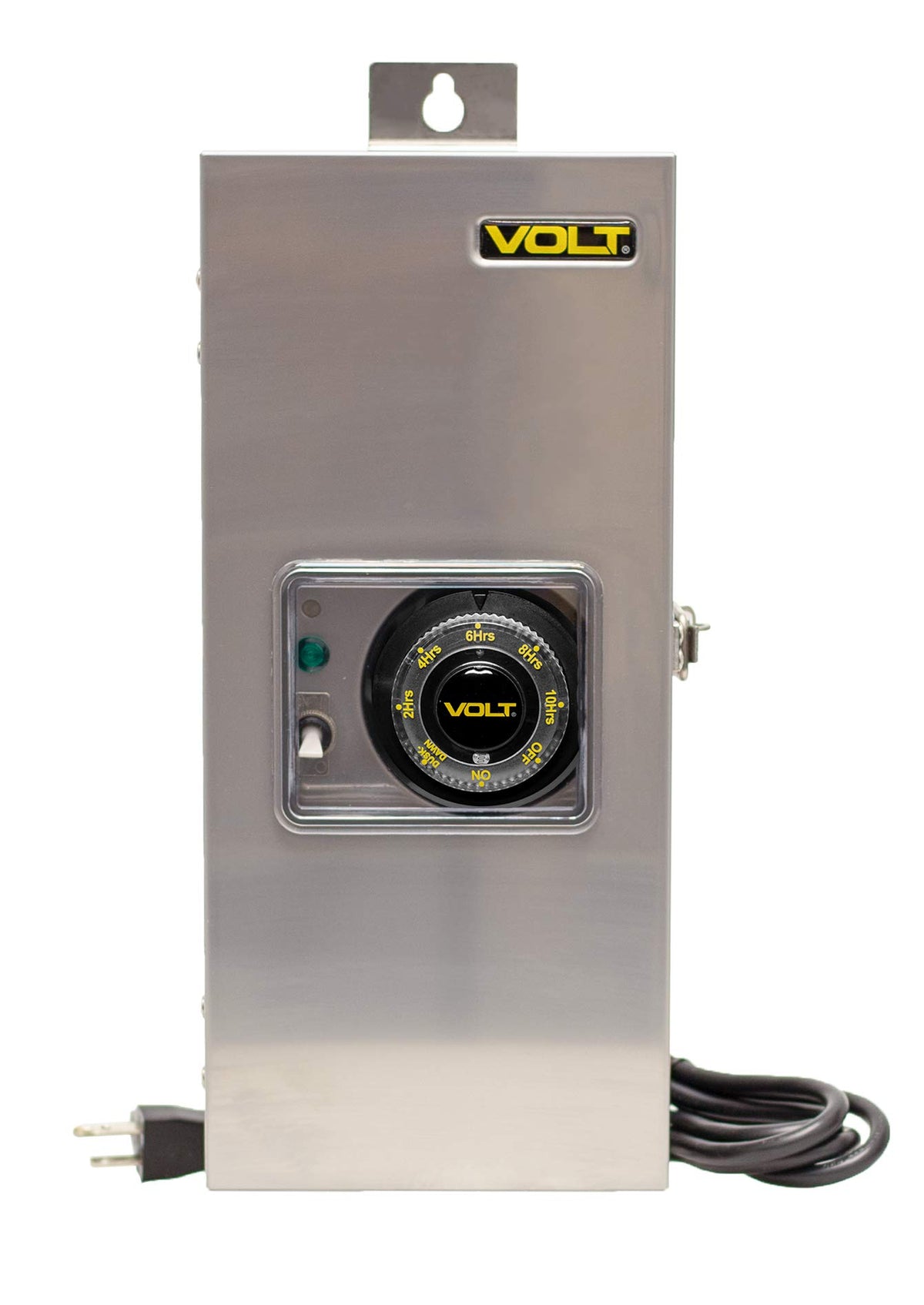 This low voltage transformer is unsurpassed in simplicity of installation and control. The clamp-type terminal blocks are far easier than the frustrating standard terminal blocks on other transformers. Just insert the stripped wire and close the clamp - it's done in seconds! Next, a VOLT innovation - the timer/photocell combination. Visible through the housing window, this timer can be set for simple dusk-to-dawn operation or set to turn off after a certain number of hours. The photocell is built into the timer. The Slim Line Transformers have an easily removable, tool-less grommet to replace the metal knock-outs of traditional transformers. Traditional knock-outs on other transformers require tools and are difficult to remove. The grommets on the Slim Line Transformers are removed easily and can be replaced if necessary. To make this transformer slimmer, lighter, and simpler-to-install, we eliminated unnecessary voltage taps; just use the 12V and 15V taps. That's all you need for any small to medium-sized (up to 150W) LED landscape lighting system. No need to worry about voltage loss. Features a toroidal core for more reliable, efficient, cooler and quieter operation than EI laminated types. Low-profile housing for easier mounting and concealment. Includes modular timer with built-in photocell and simple settings - easy to set-up. Clamp-type wire connectors for easy, fast, and secure connections. Accepts up to 10-gauge wire. Stainless steel enclosure with lockable hinged lid. ETL Listed. Lifetime manufacturer's warranty. Patent pending.