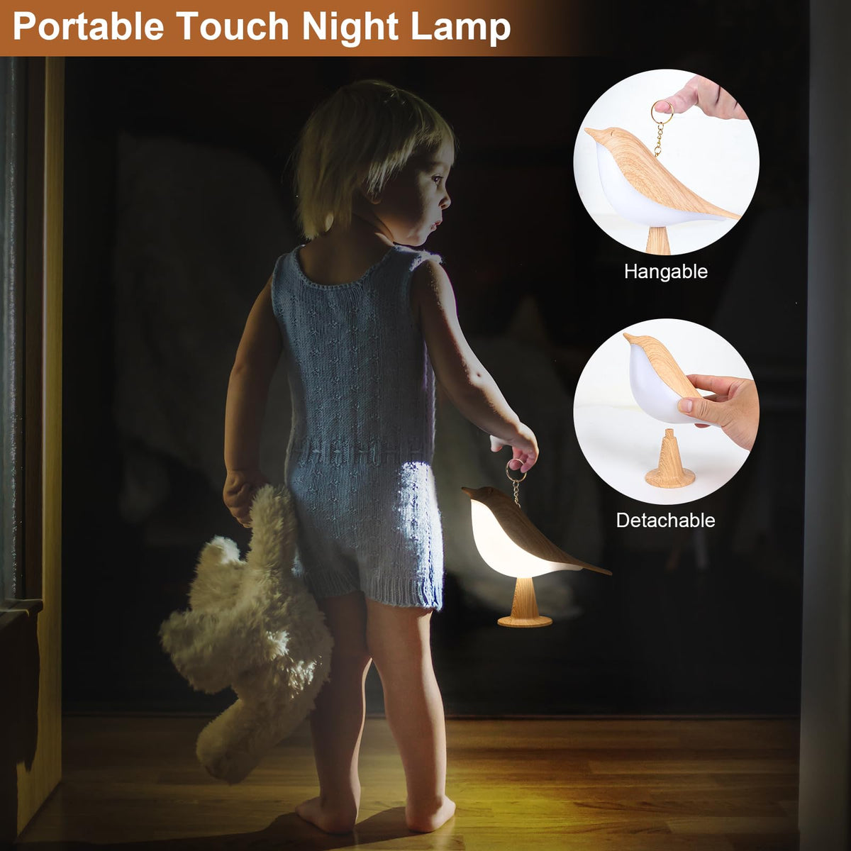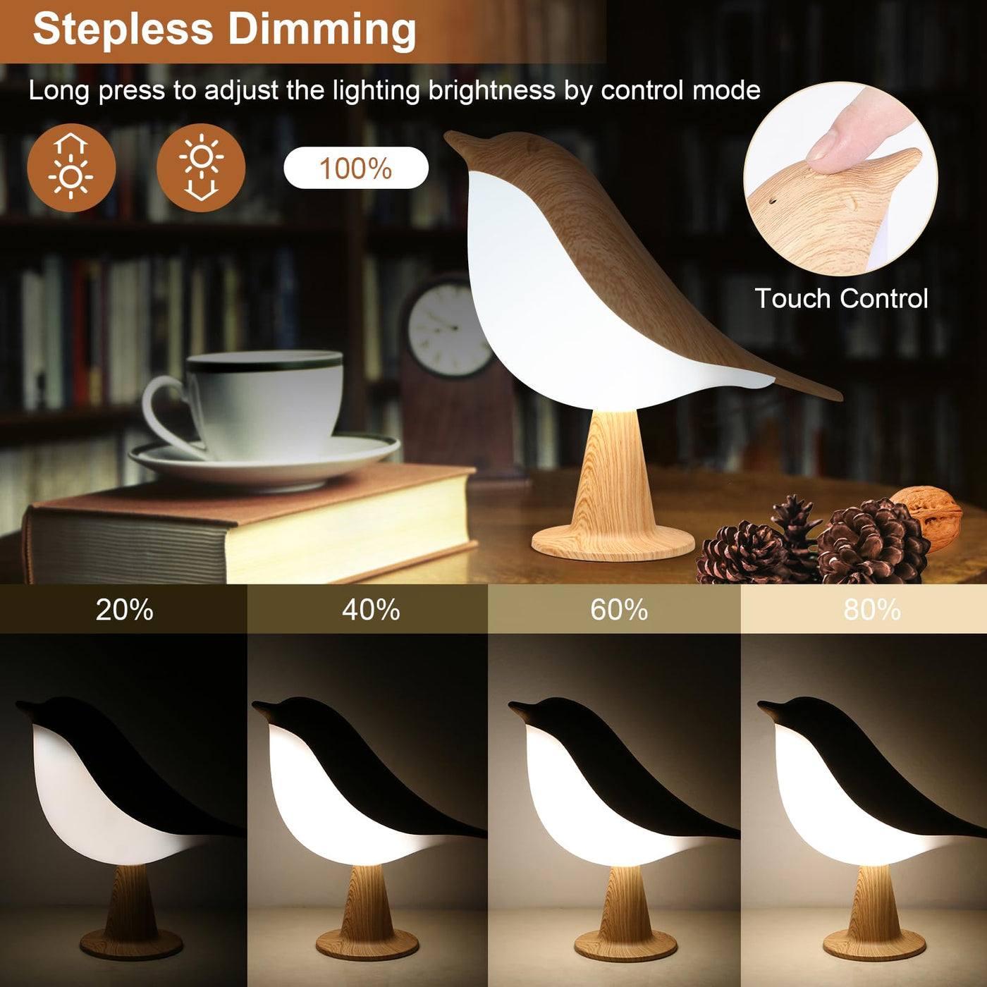 Vomii 2-Pack Small Bird Table Lamp, 3-Color Dimmable Touch Desk Lamp, Cordles Bedside Lamp, Usb Rechargeable Cold/Warm Night Lig