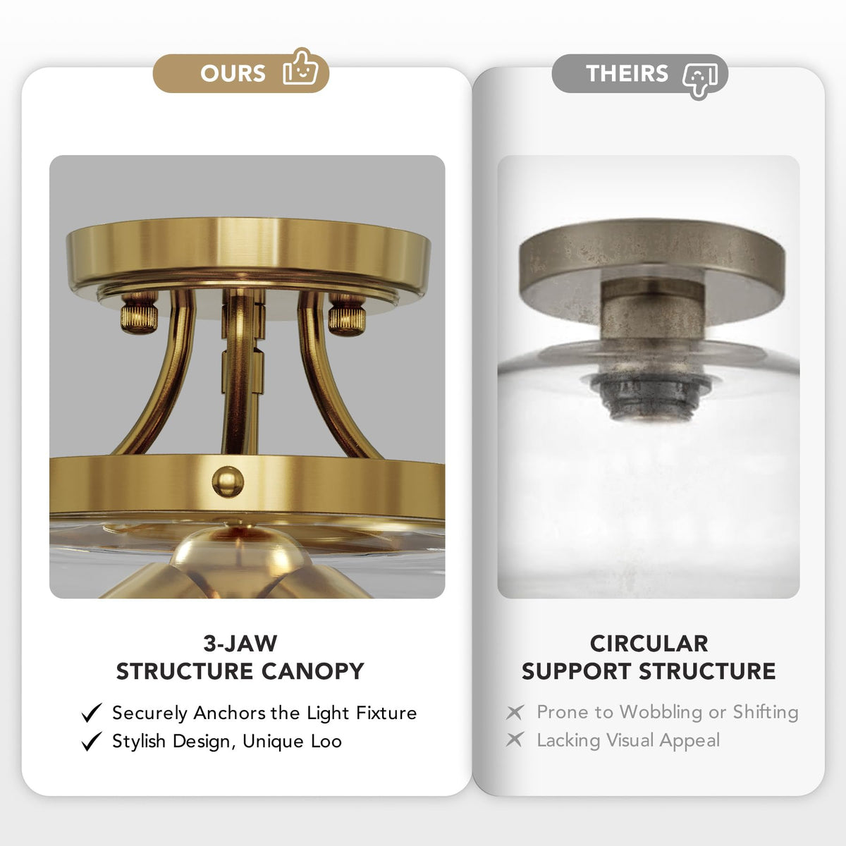 Vonluce 13.8" Industrial Semi Flush Mount Ceiling Light With Clear Glass Shade, Brushed Gold